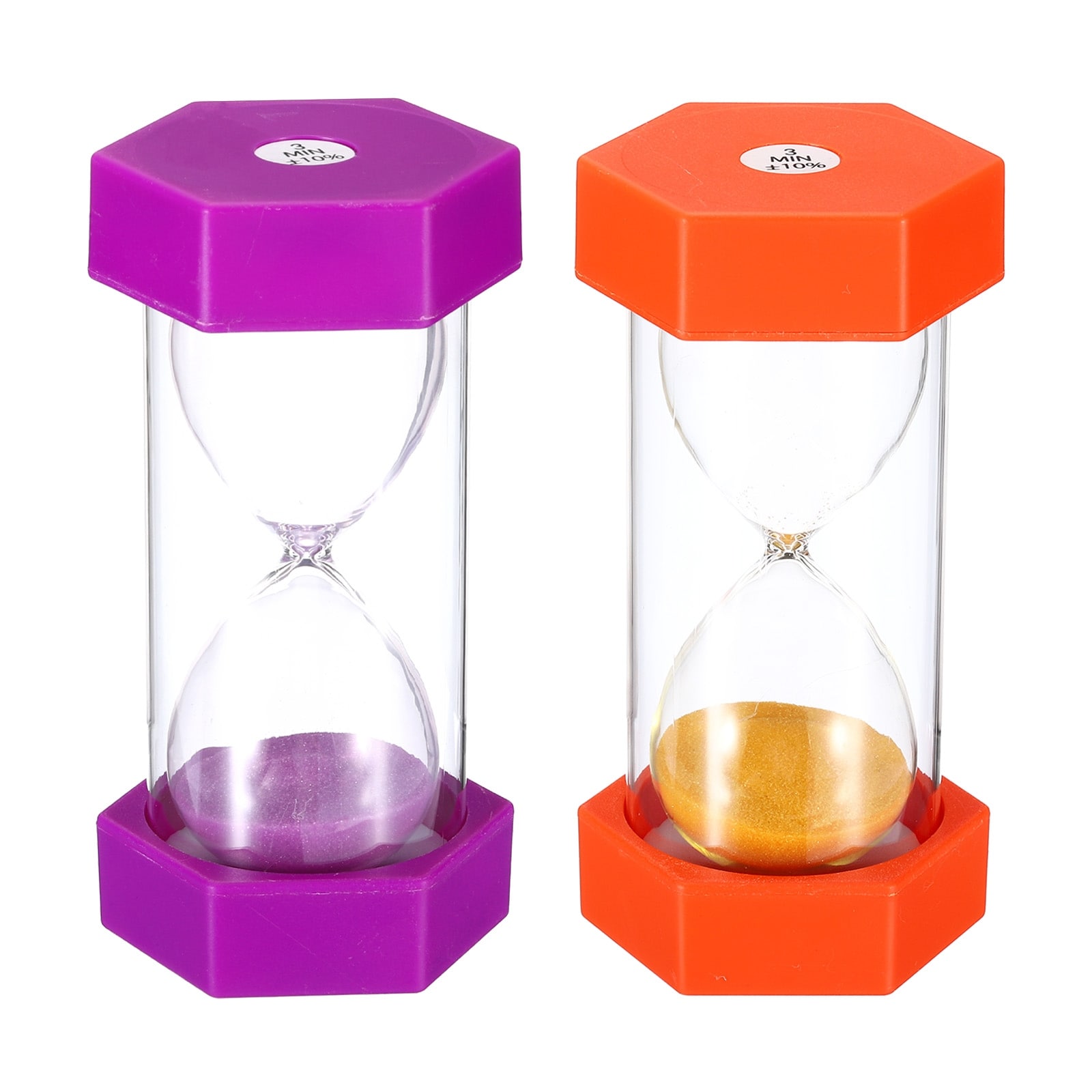 3 Min Sand Timer, 1 Set(2pcs)Small Sandy Clock, Sand Glass Purple, Orange - Purple,Orange