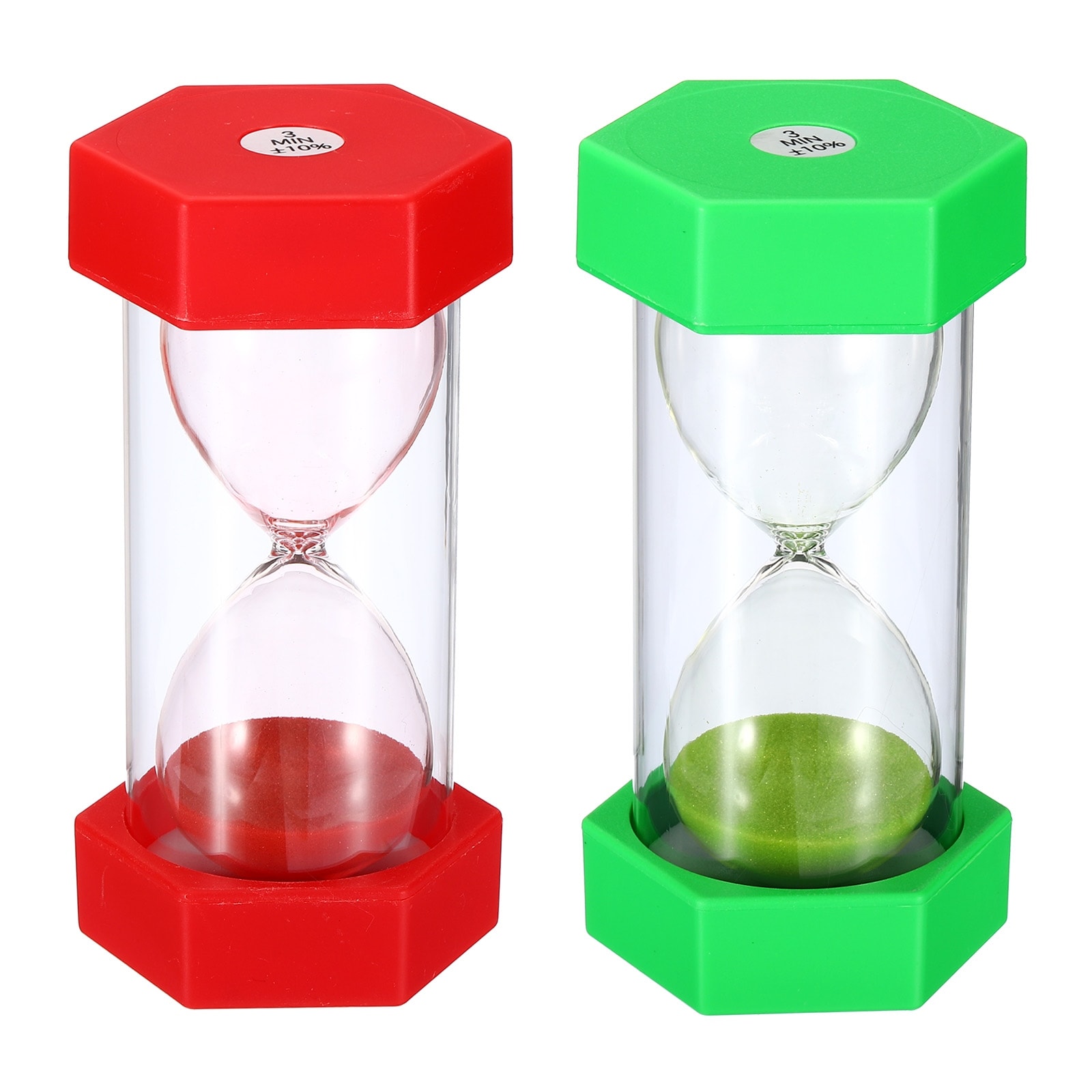 3 Min Sand Timer, 1 Set(2pcs)Hexagon Small Sandy Clock, Sand Glass Red, Green - Red,Green