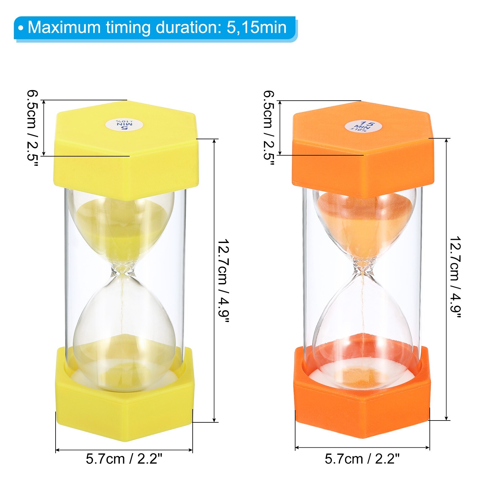 5,15 Min Sand Timer,2pcs Hexagon with Cover,Count Down Sand Clock Yellow,Orange - Yellow, Orange