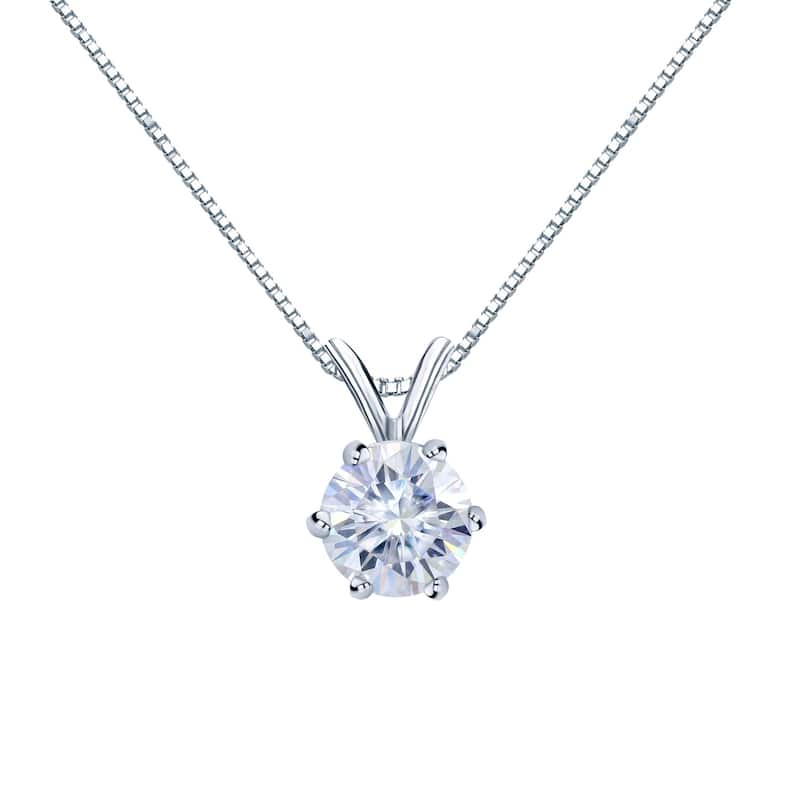 Auriya 18k Gold 1ctw Round Solitaire Moissanite Necklace 6-prong Basket - 6.5 mm - 6.5 mm