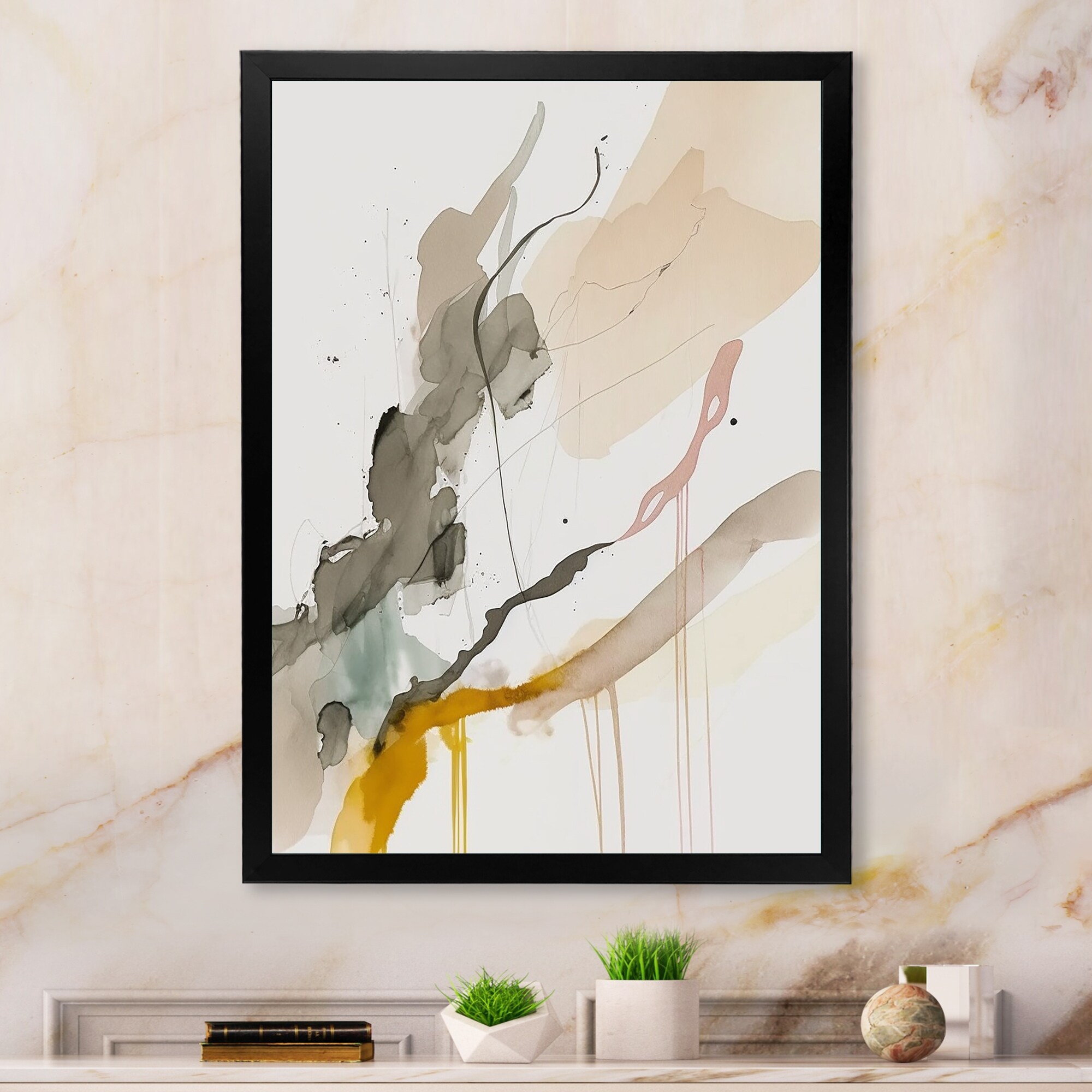 Designart "Touched By Mustard Yellow And Ultimate Gray V" Abstract Liquid Ink Framed Art Print