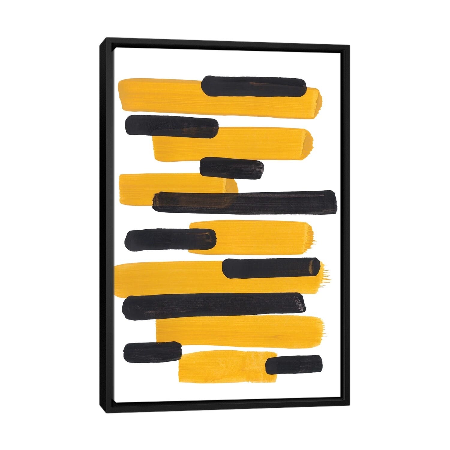 iCanvas "Mustard Black Lines I" by EmcDesignLab Framed Canvas Print