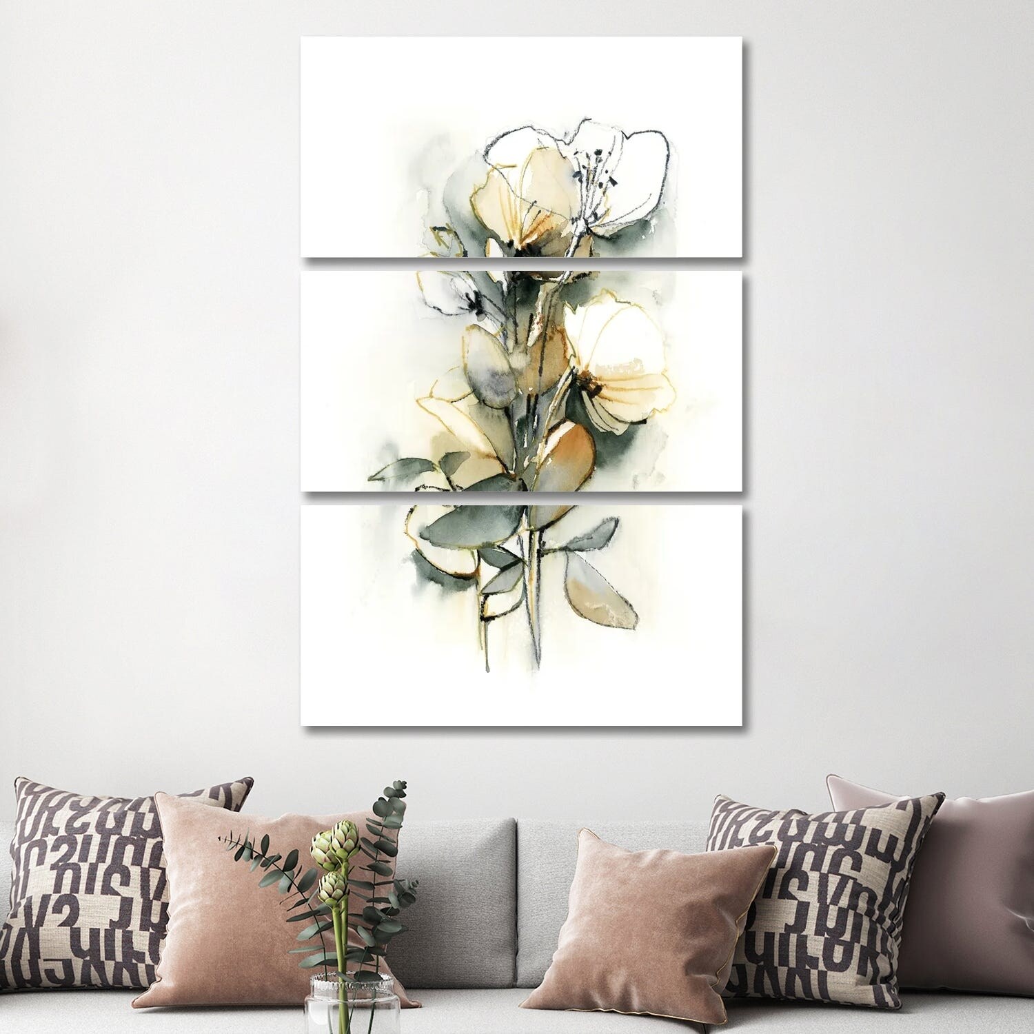 iCanvas "Florals In Mustard Yellow And Green II" by Sophie Rodionov 3-Piece Wall Art Set