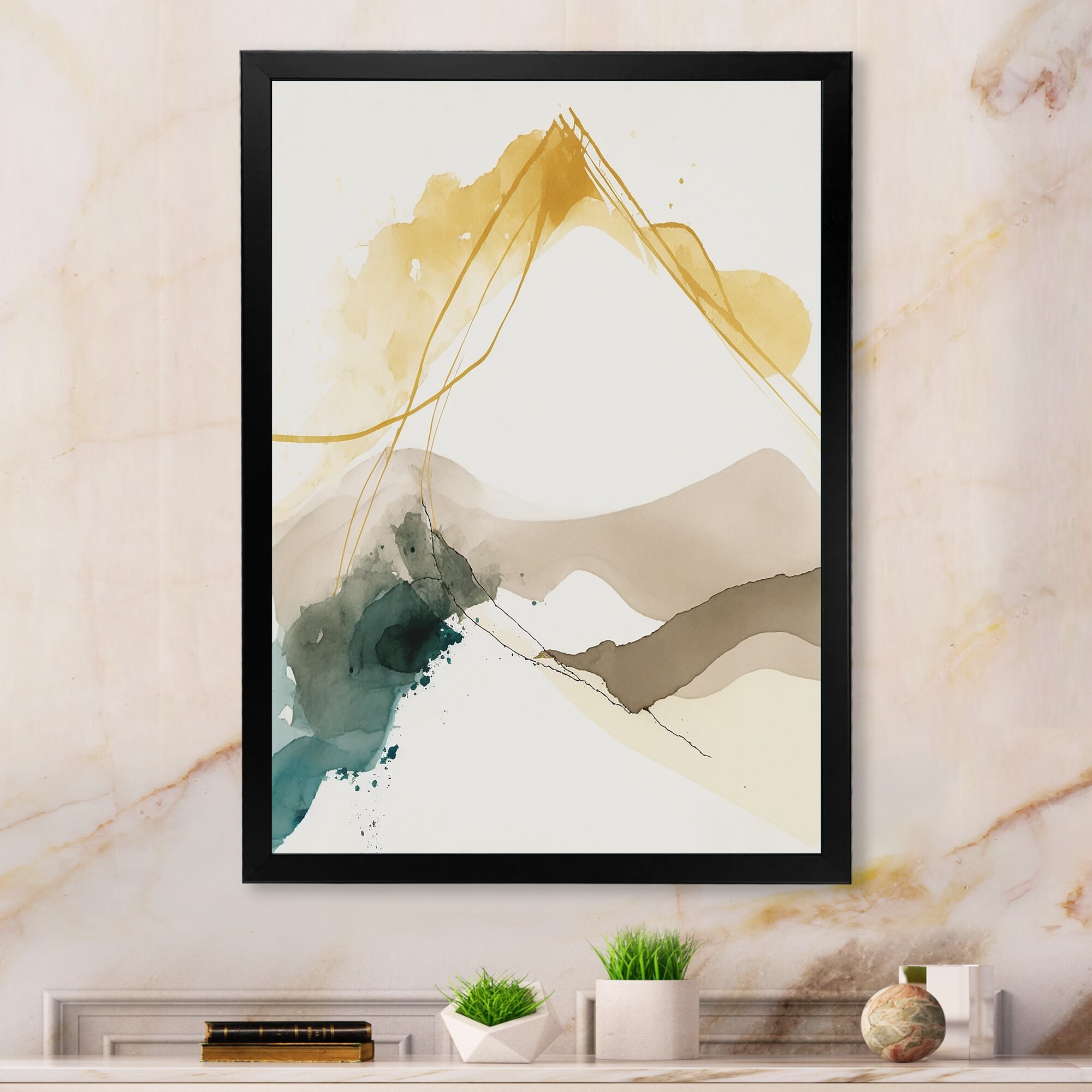 Designart "Mustard Yellow Secrets I " Abstract Liquid Ink Framed Art Print
