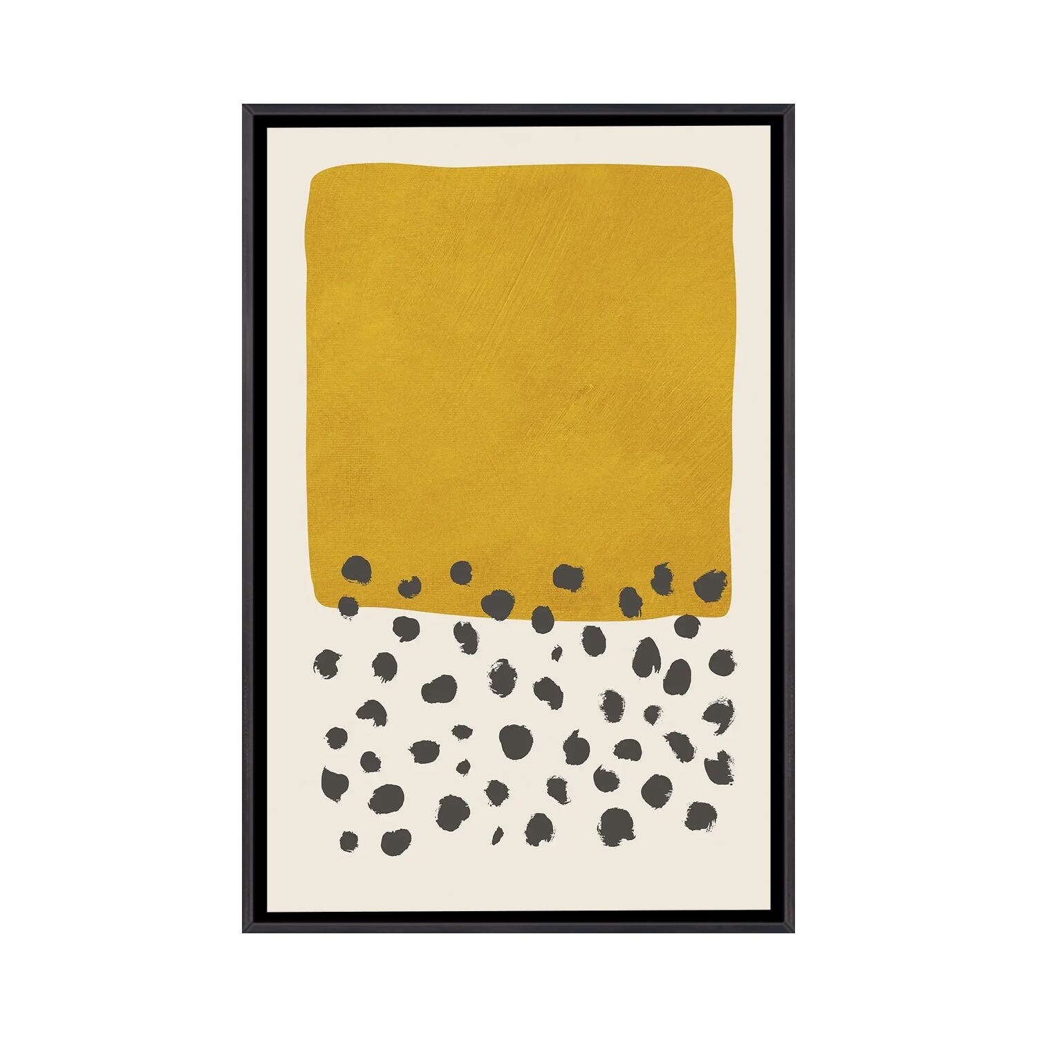 iCanvas "Mustard Black Dots I" by EmcDesignLab Framed Canvas Print