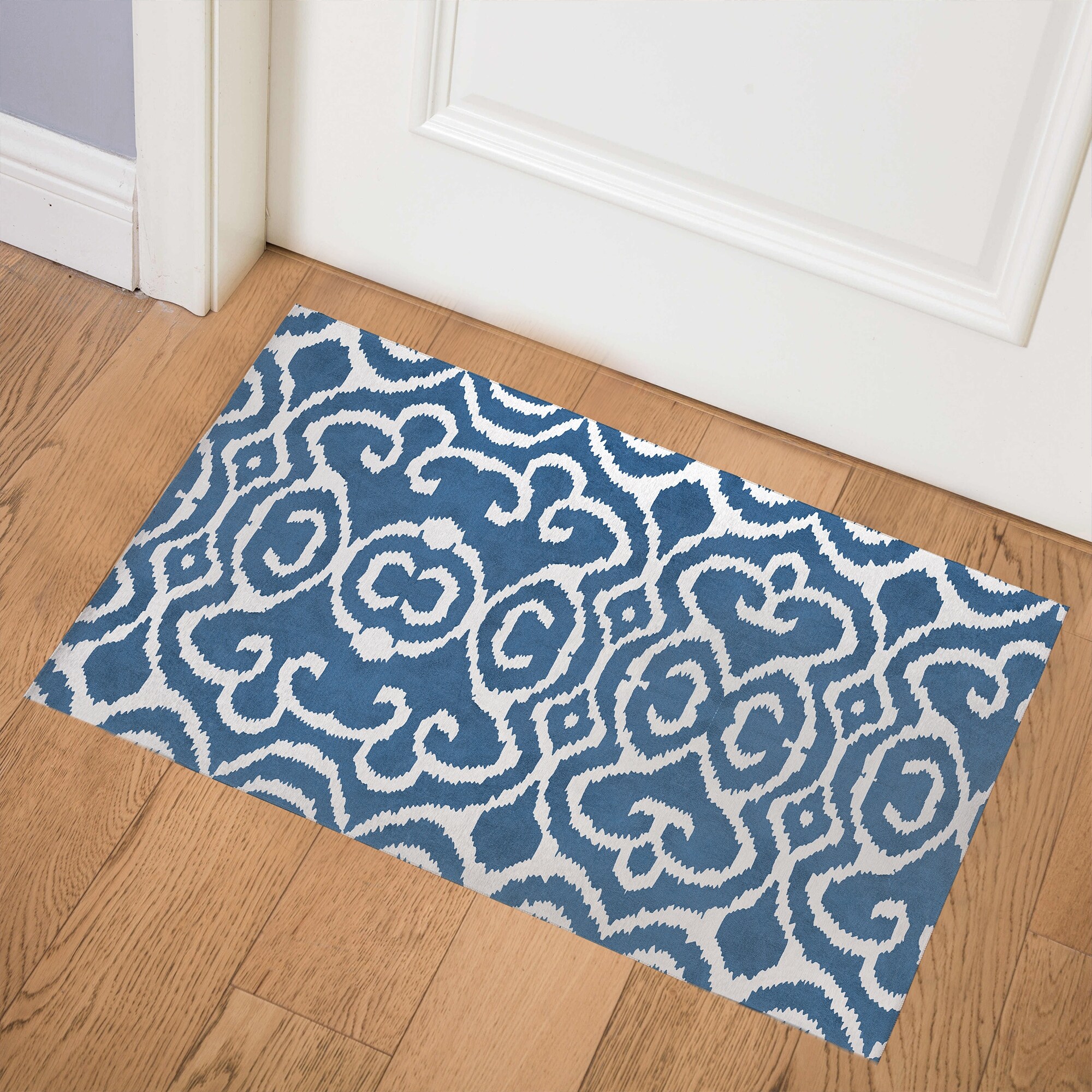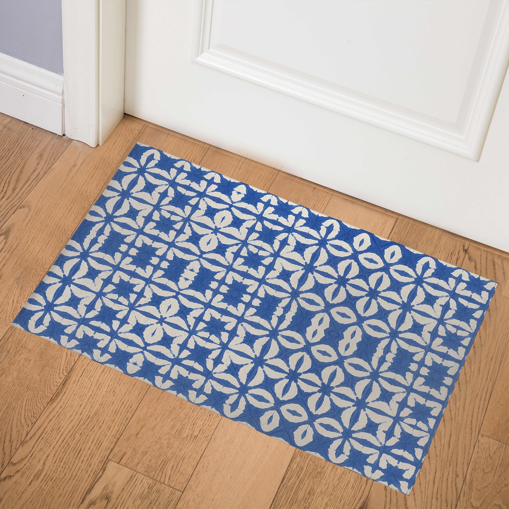 SIMPLY ELEGANT TRELLIS BLUE Indoor Floor Mat By Nancy Green