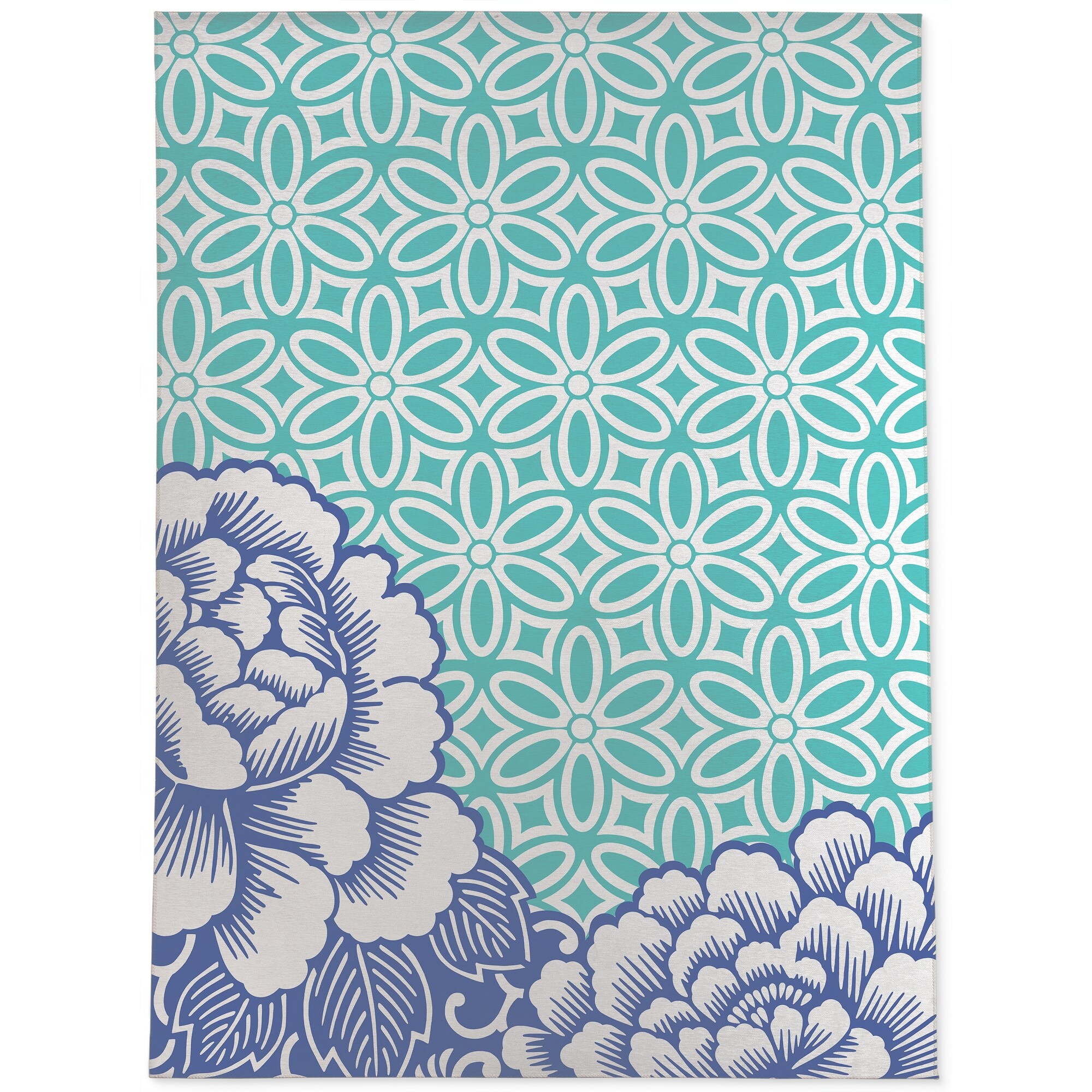 PASTICHE FLEUR BLUE Outdoor Rug by, Nancy Green