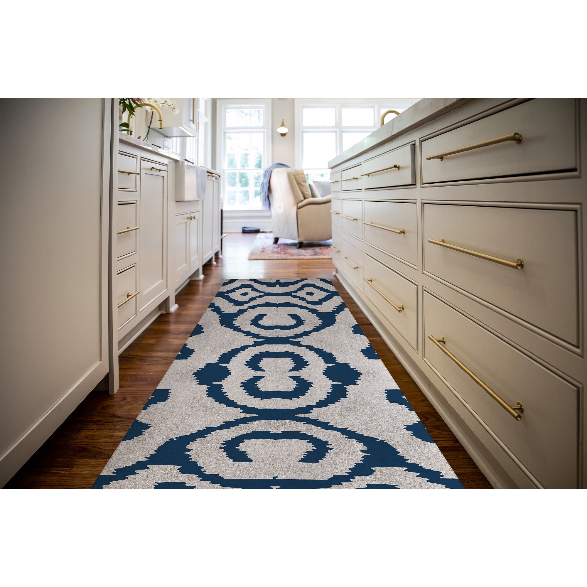 SIMPLY ELEGANT TRELLIS NAVY Kitchen Mat By Nancy Green