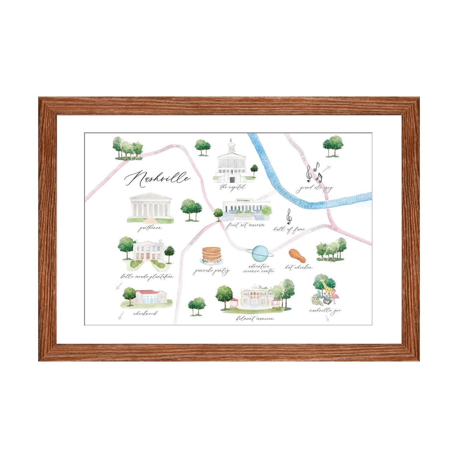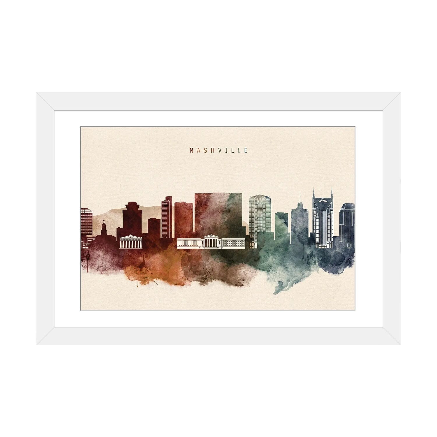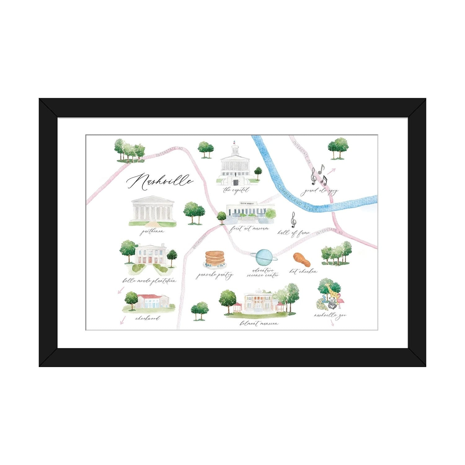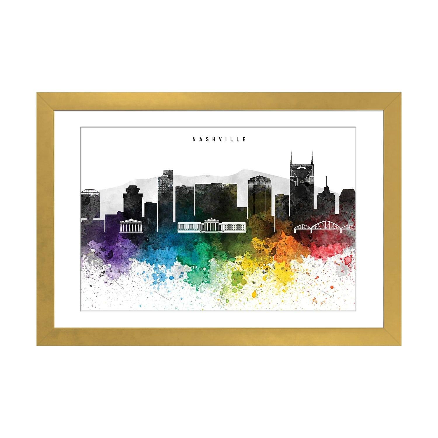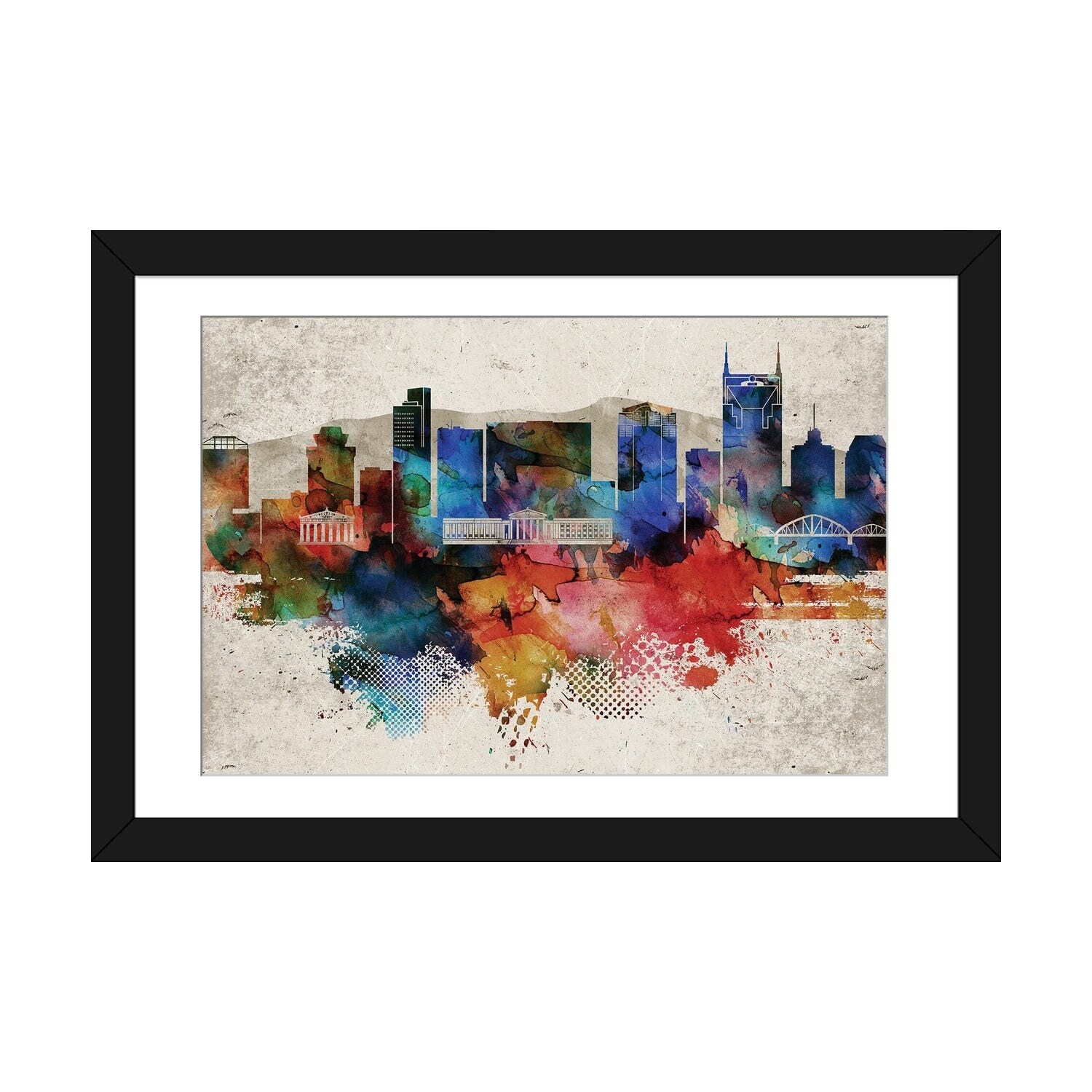 iCanvas "Nashville Landmarks Watercolor Poster" by Paul Rommer Framed