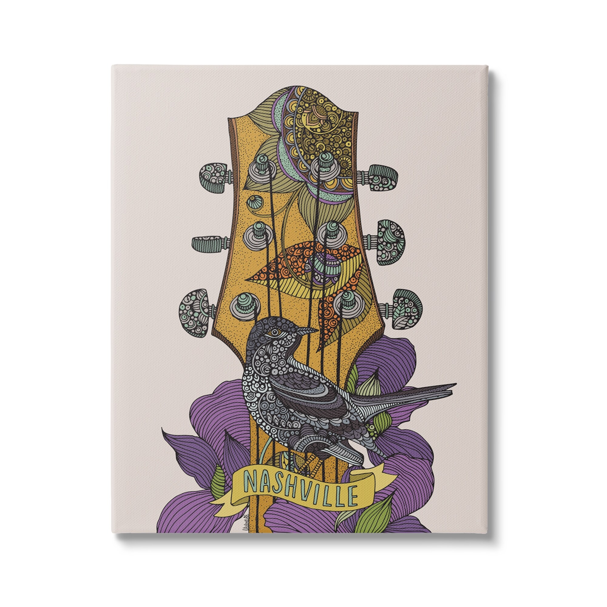 Stupell Intricate Nashville Guitar Floral Patterned Bird Perched Canvas Wall Art, Design by Valentina Harper