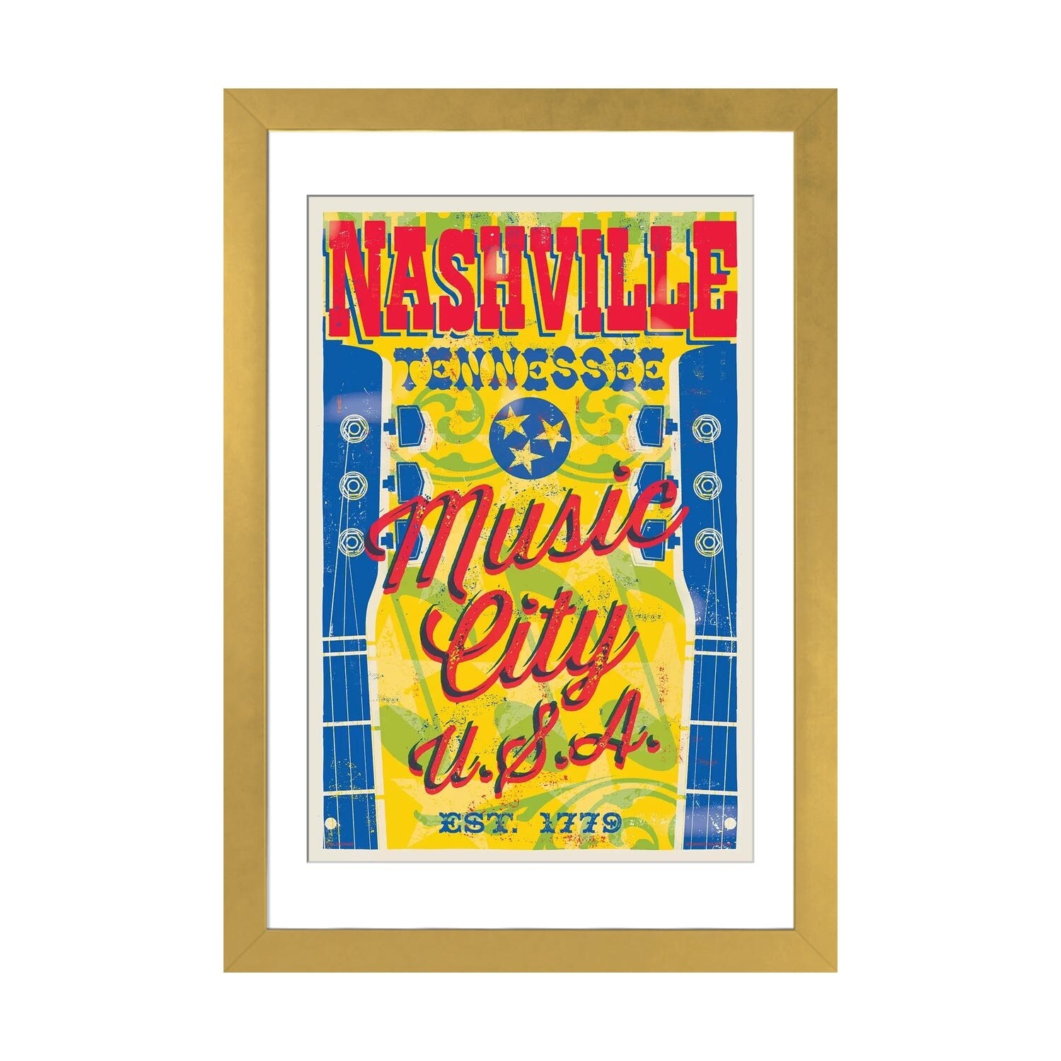 iCanvas "Nashville Music City U.S.A. Poster" by Jim Zahniser Framed