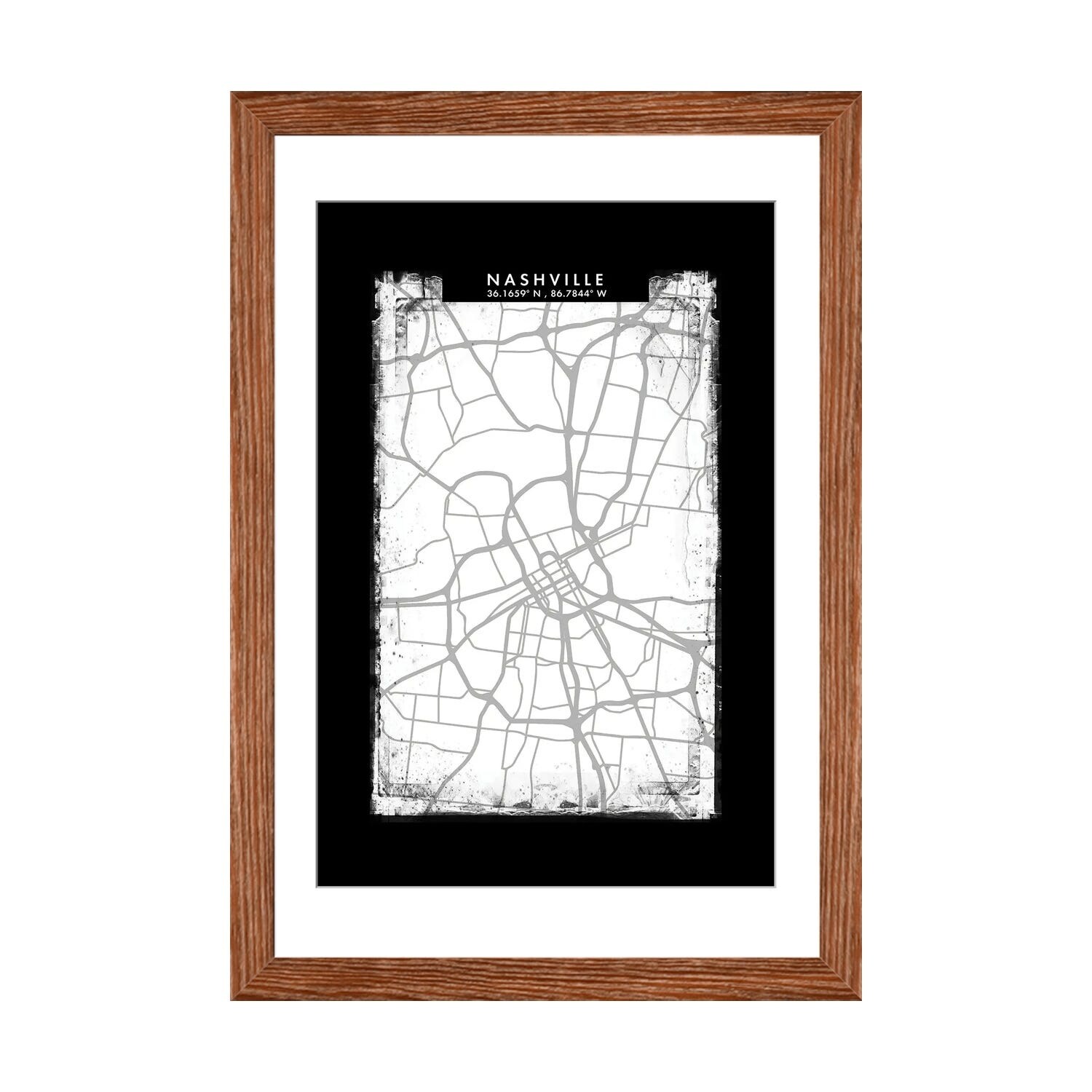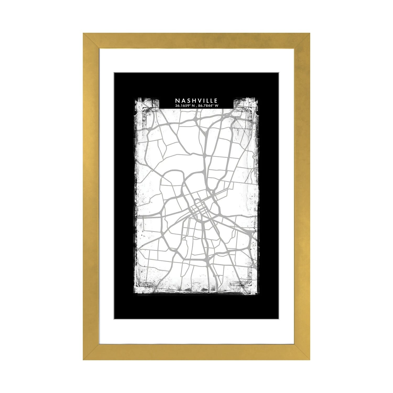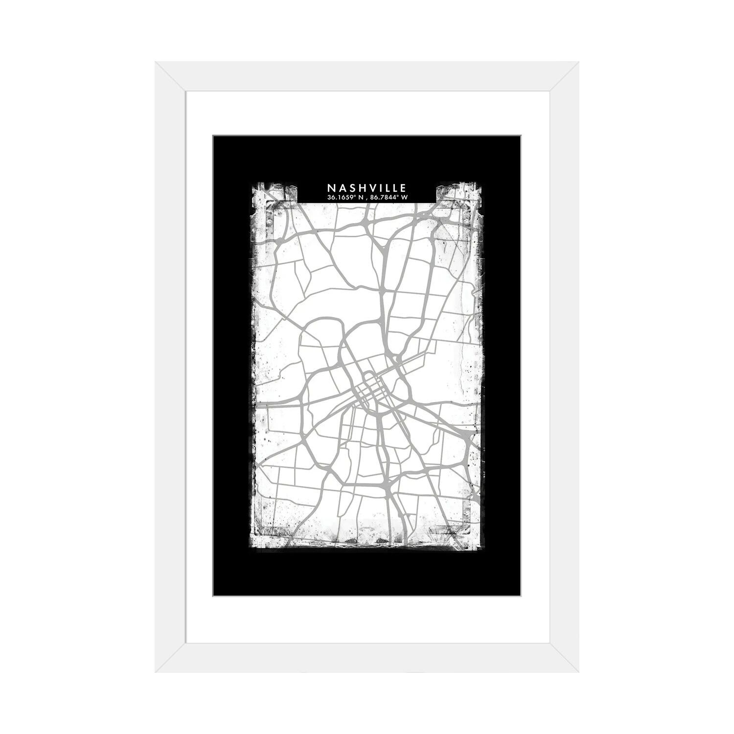 iCanvas "Nashville City Map Black White Grey Style" by WallDecorAddict