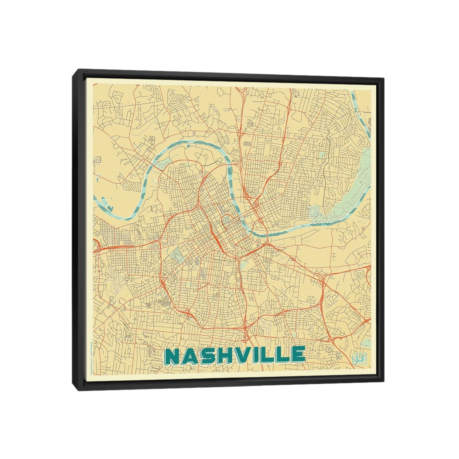 iCanvas "Nashville Retro Urban Blueprint Map" by Hubert Roguski Framed