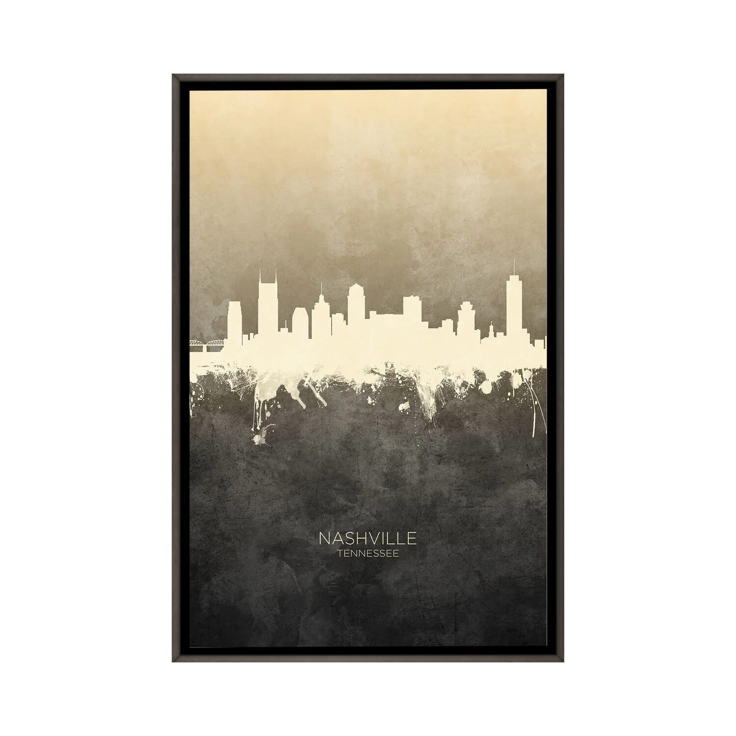iCanvas "Nashville Tennessee Skyline Taupe" by Michael Tompsett Framed