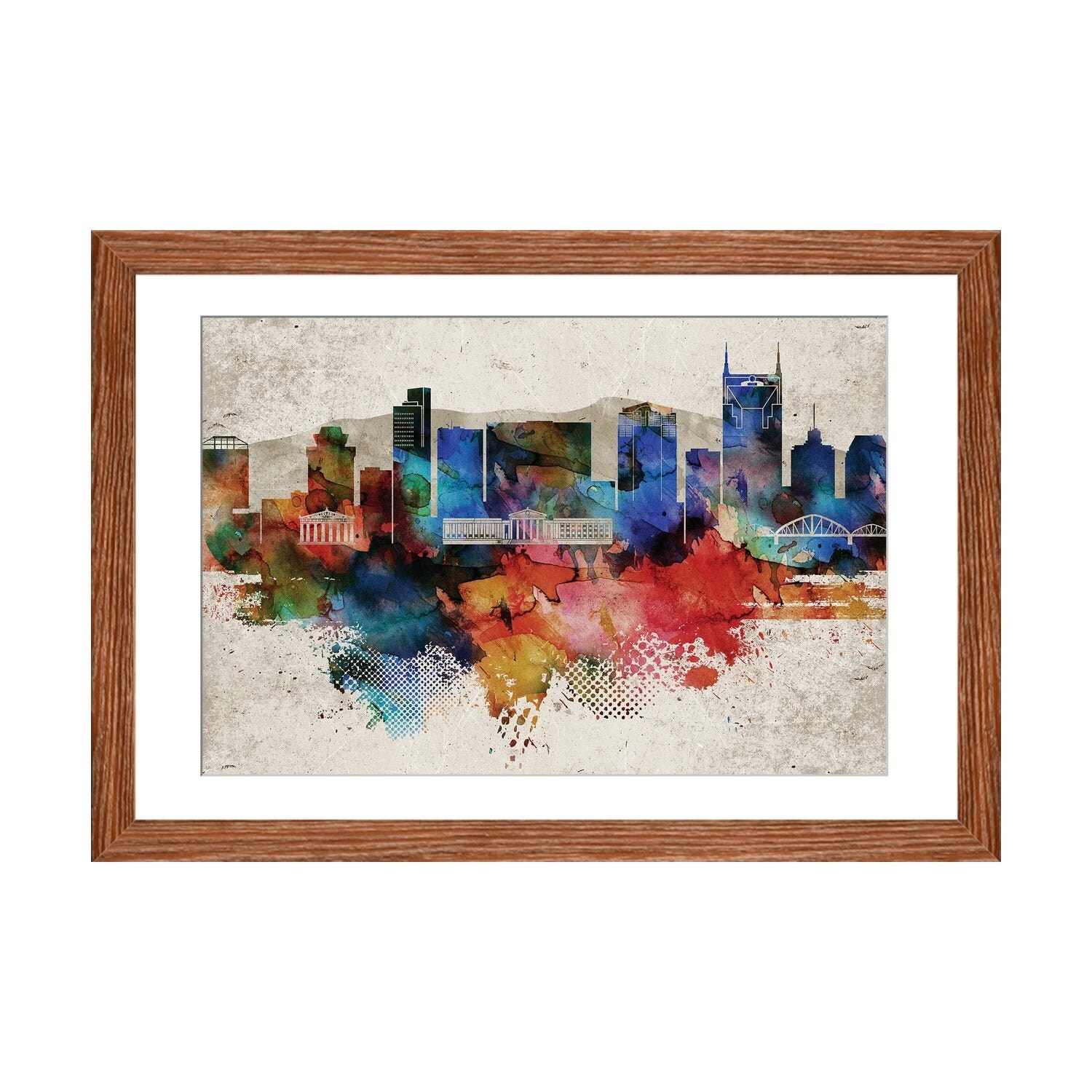 iCanvas "Nashville Skyline in Watercolor Background" by Paul Rommer