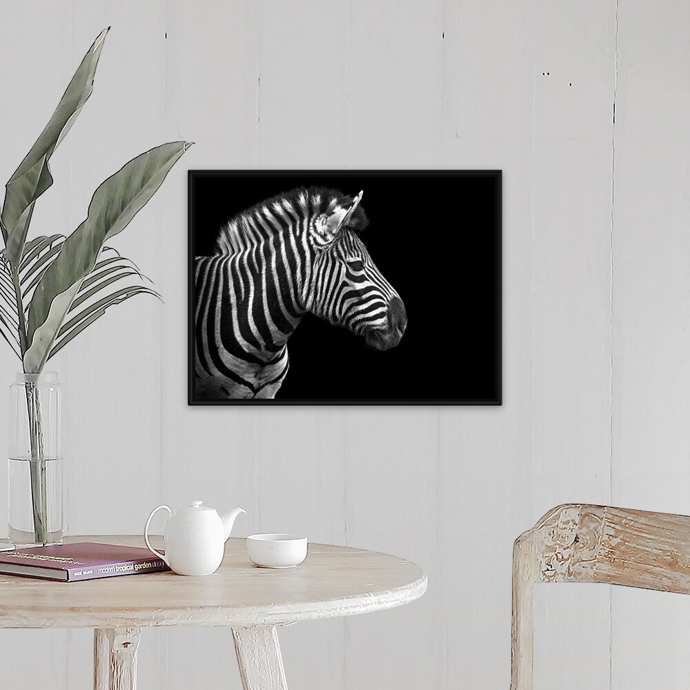 "Portrait of zebra in black and white on black background. Taken at Nashville " Black Float Frame Canvas Art