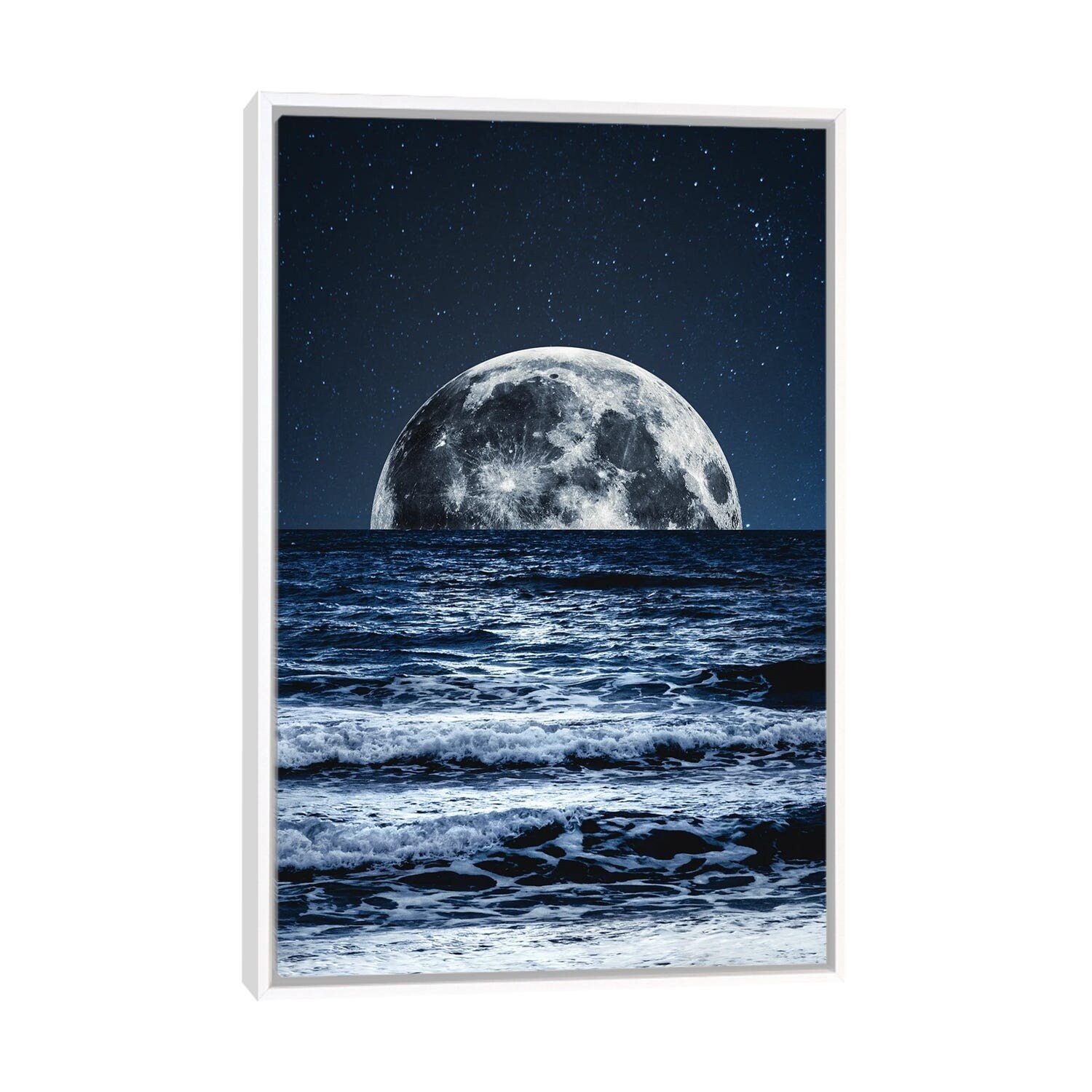 iCanvas "Moonrise Over Ocean Blues" by Nature Magick Framed Canvas Print