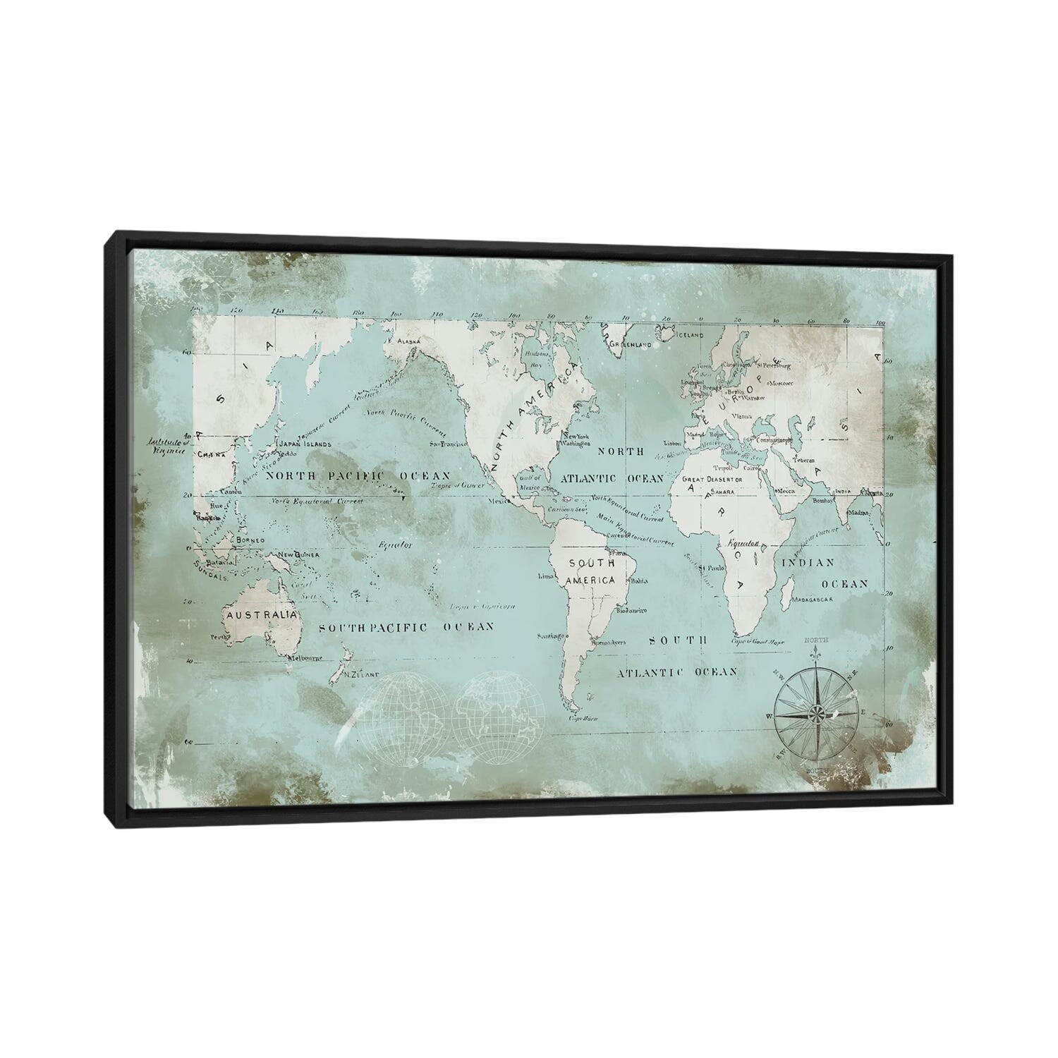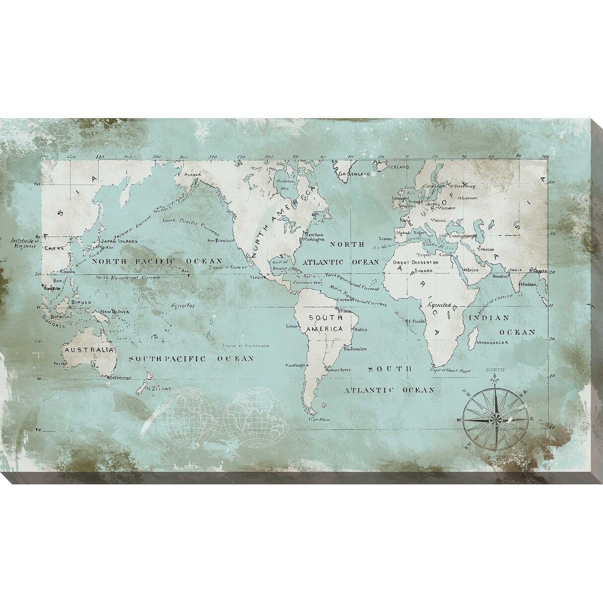 iCanvas "World Travel Map Ocean Blue" by Nature Magick