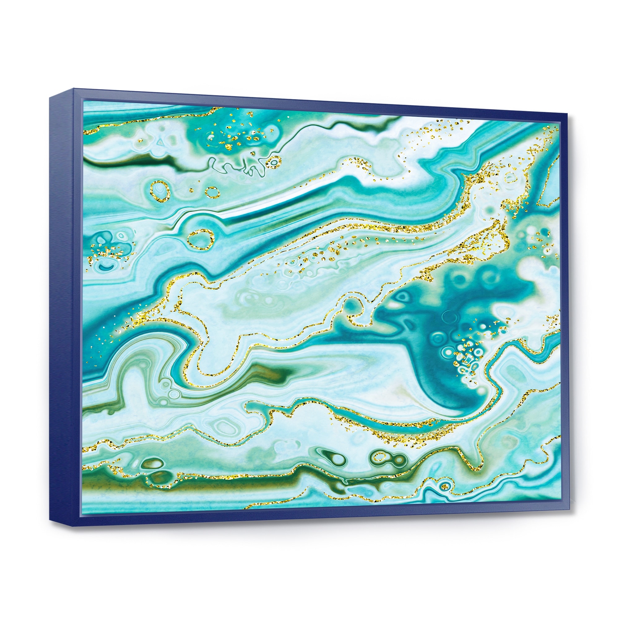 Designart "Ocean Blue Golden Marble " Modern Framed Canvas Wall Art Print