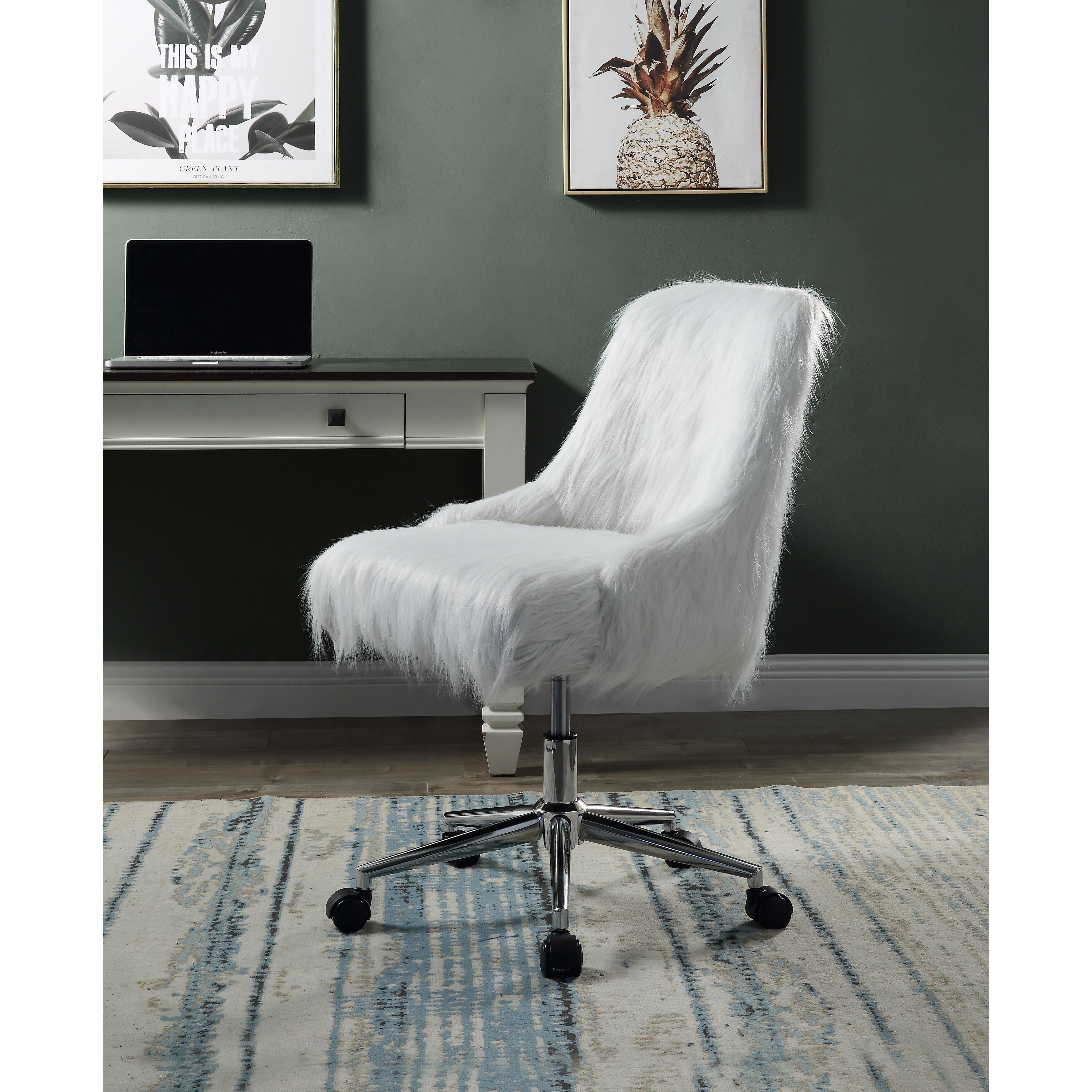Swivel Office Chair with Rounded Back and Arms, White and Chrome