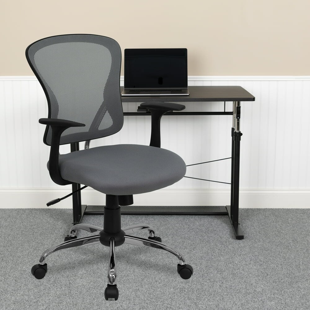 Mid-Back Gray Mesh Swivel Task Office Chair with Chrome Base and Arms