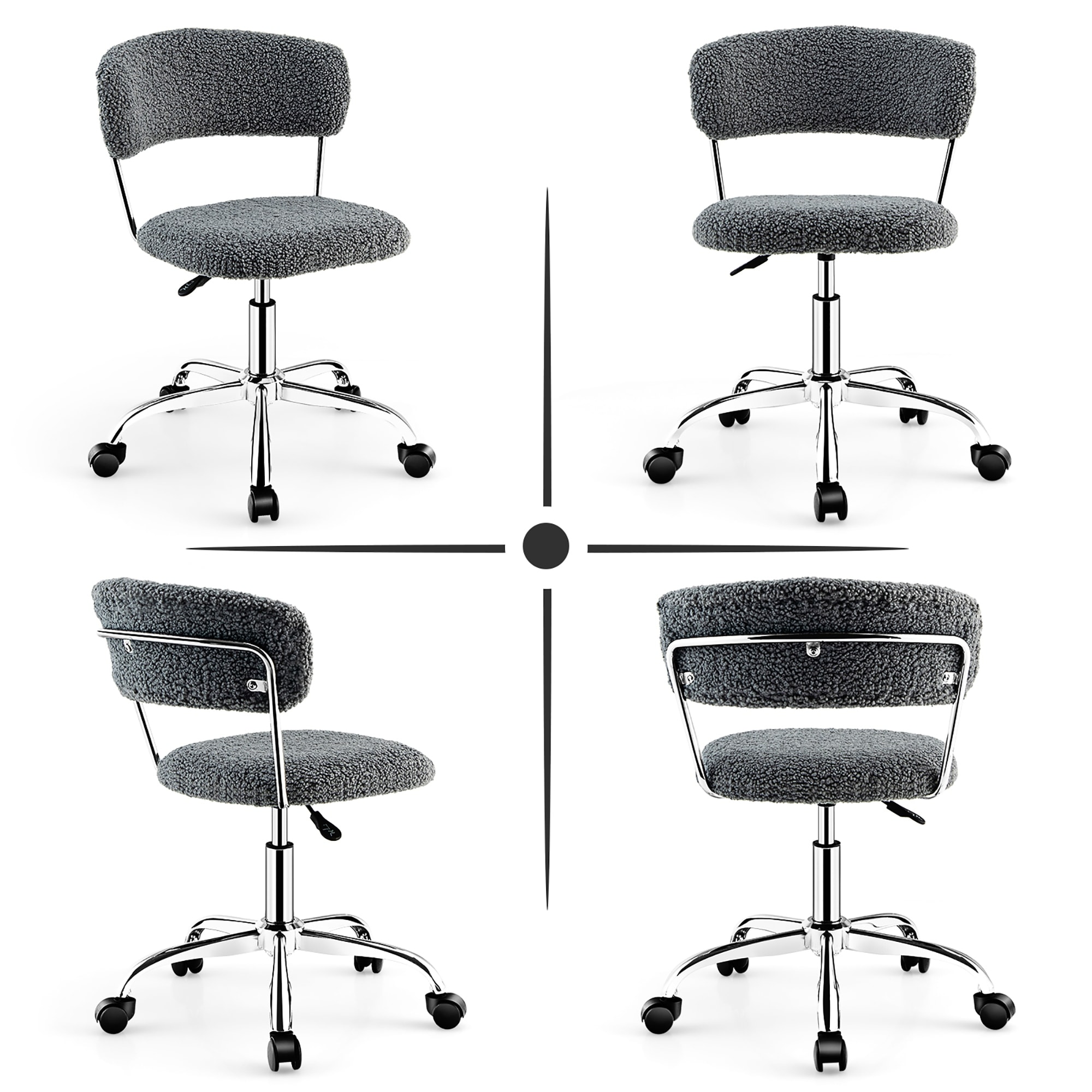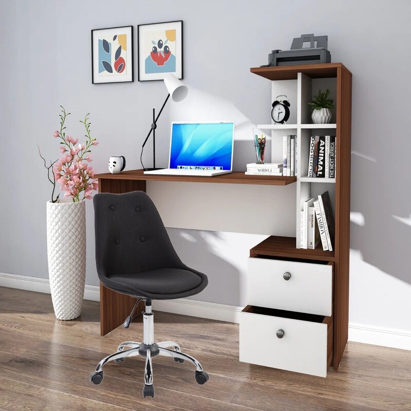 Modern Leisure Office Chair, Swivel Chair with Casters & Adjustable Lift Seat, Curved Backrest Design, Casters for Easy Mobility