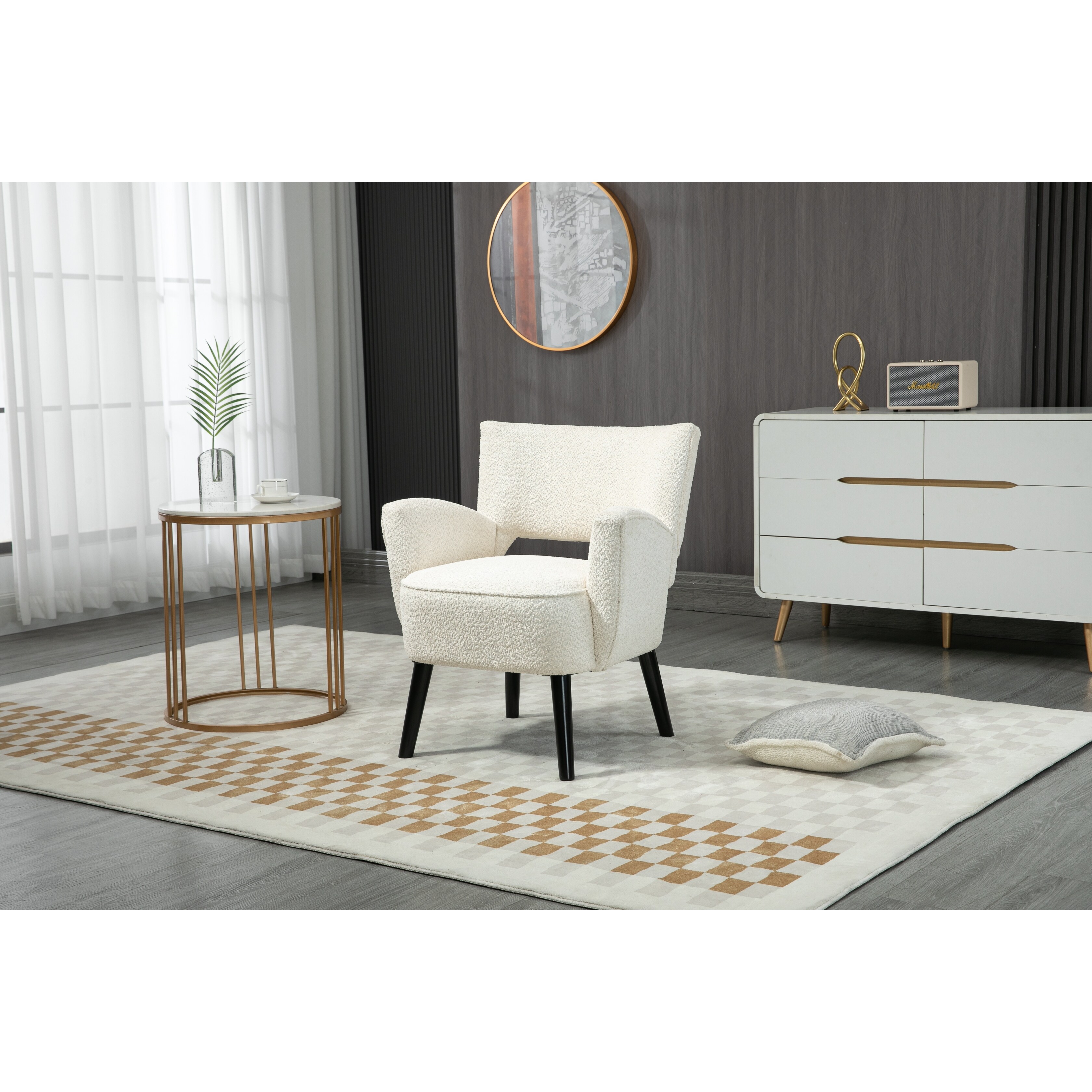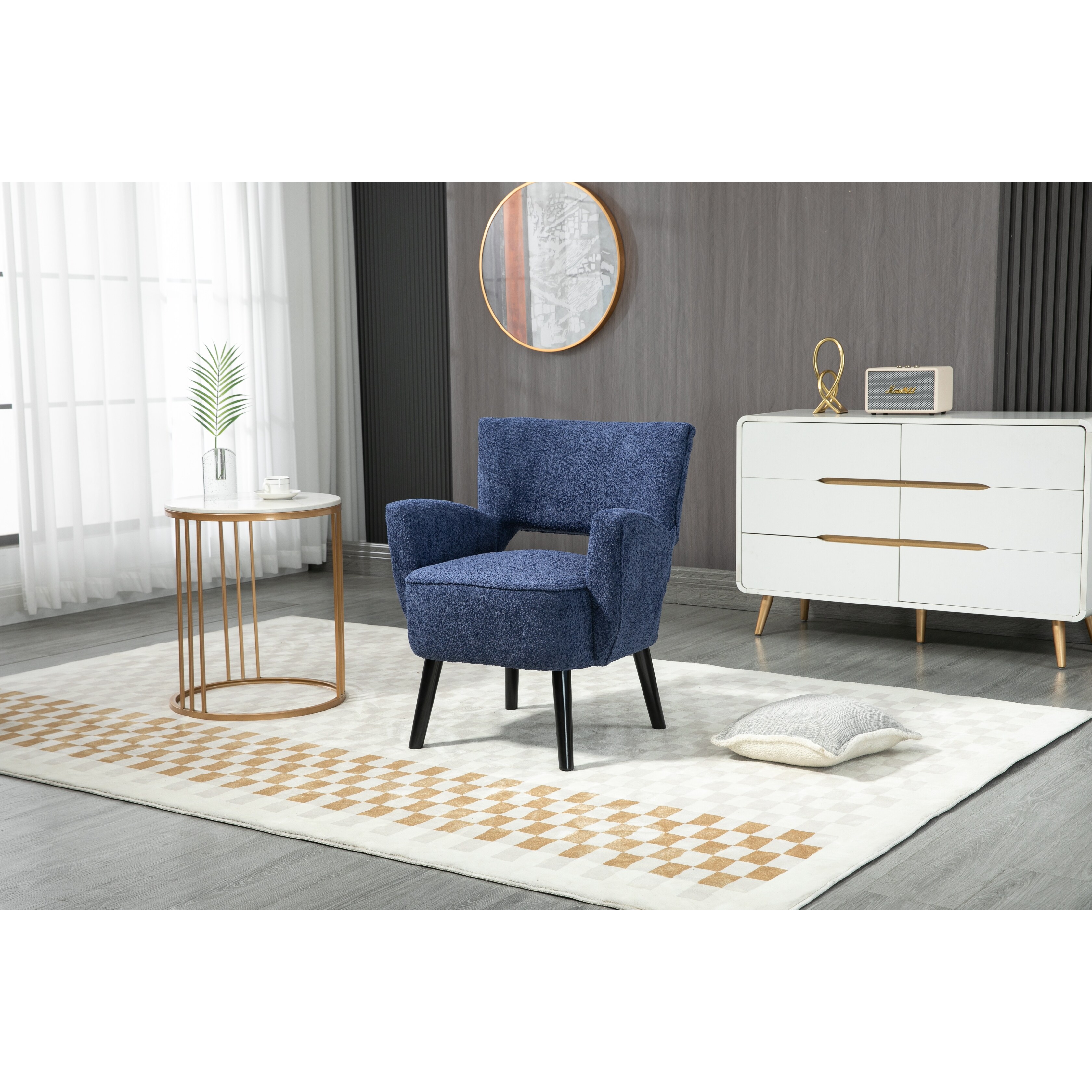 Fabric Accent Arm Chair with Upholstered seat, Backrest Chair with Solid Wood Legs, for Living Room Office