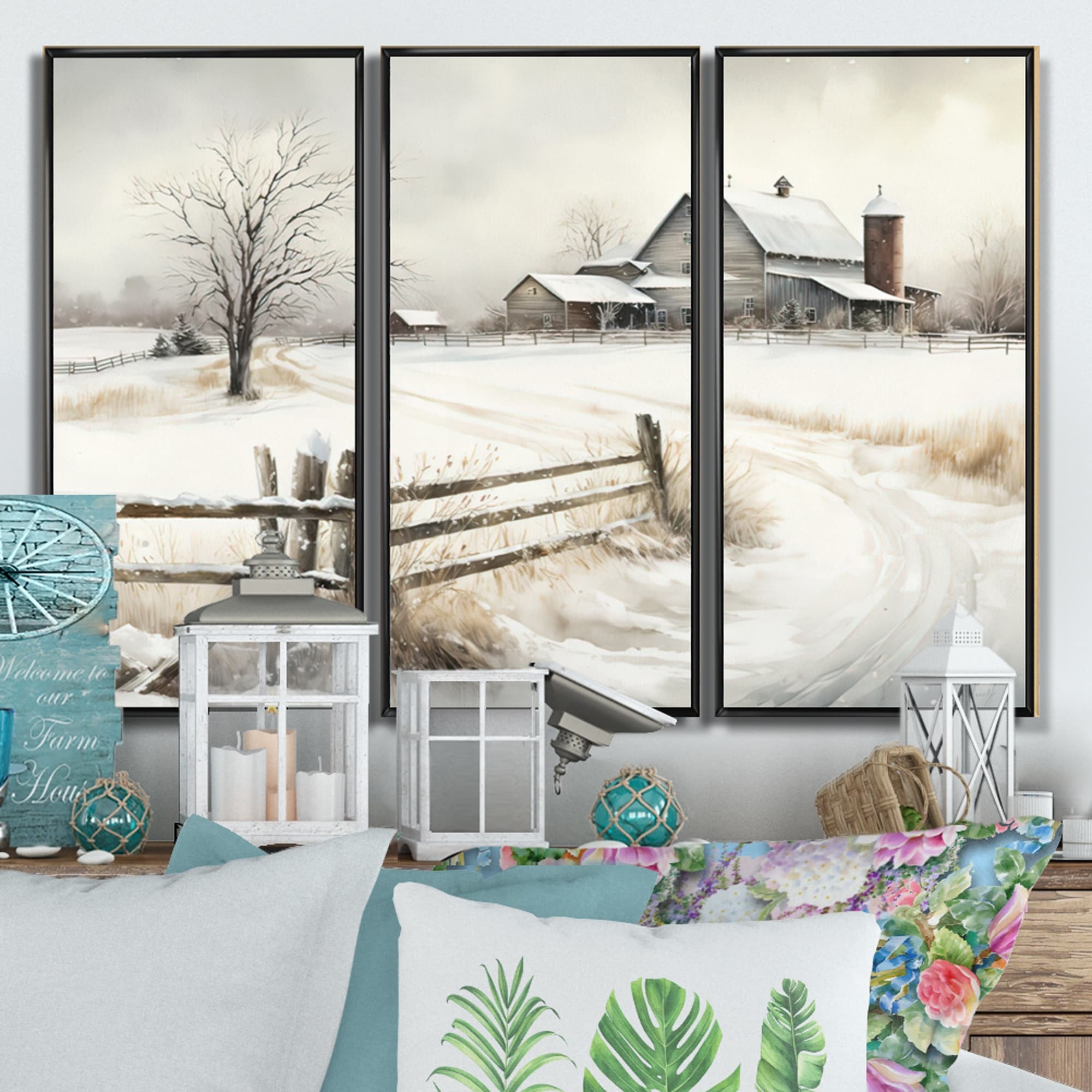 Designart "Ohio Farm in Winter " Farm Landscape Framed Canvas Art Print - 3 Panels