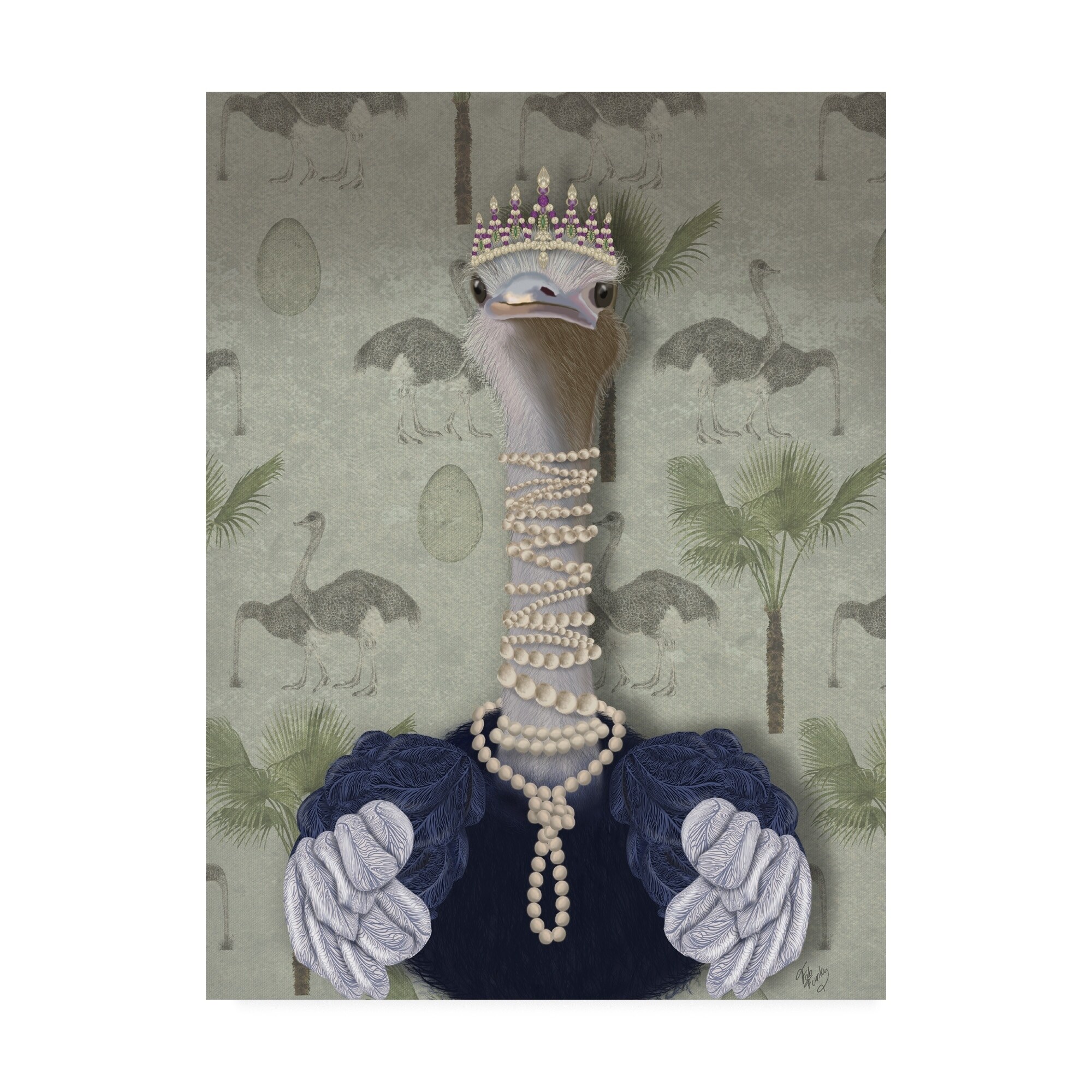 Fab Funky 'Ostrich and Pearls, Portrait' Canvas A