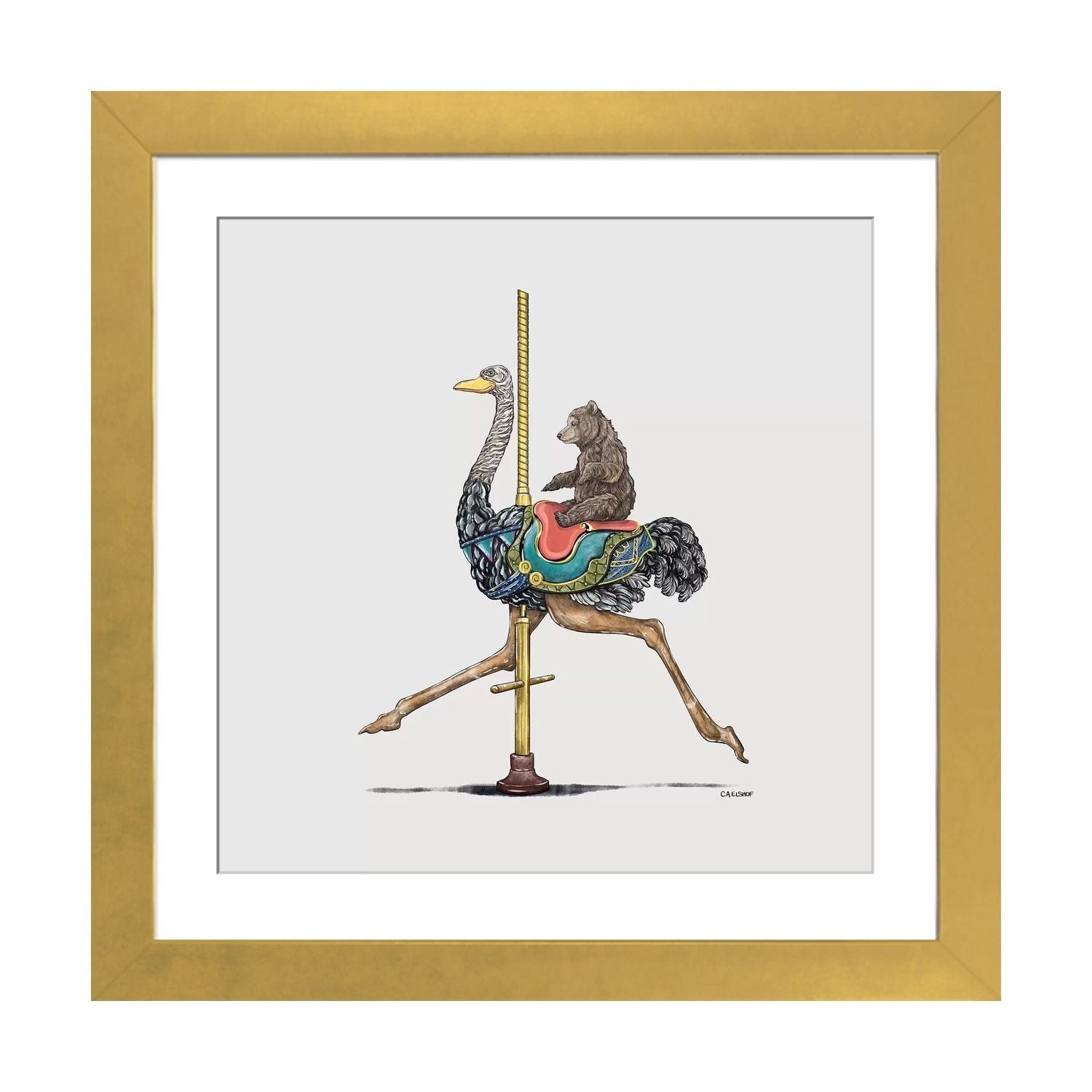 iCanvas "Bear Cub on Ostrich Carousel" by Carolynn Elshof Framed