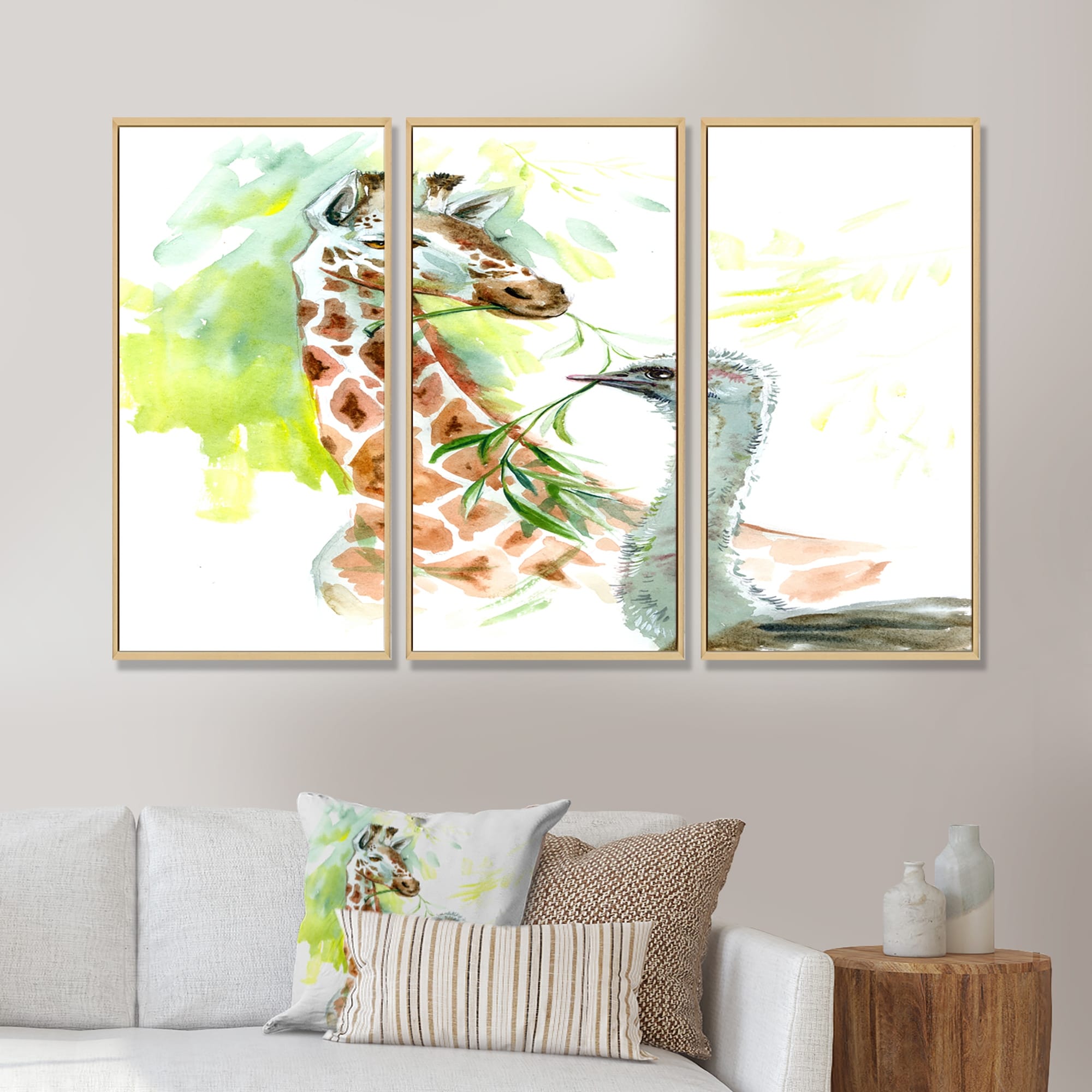 Designart "Portrait Of a Giraffe And an Ostrich" Traditional Framed Wall Decor Set of 3 - 4 Colors of Frames