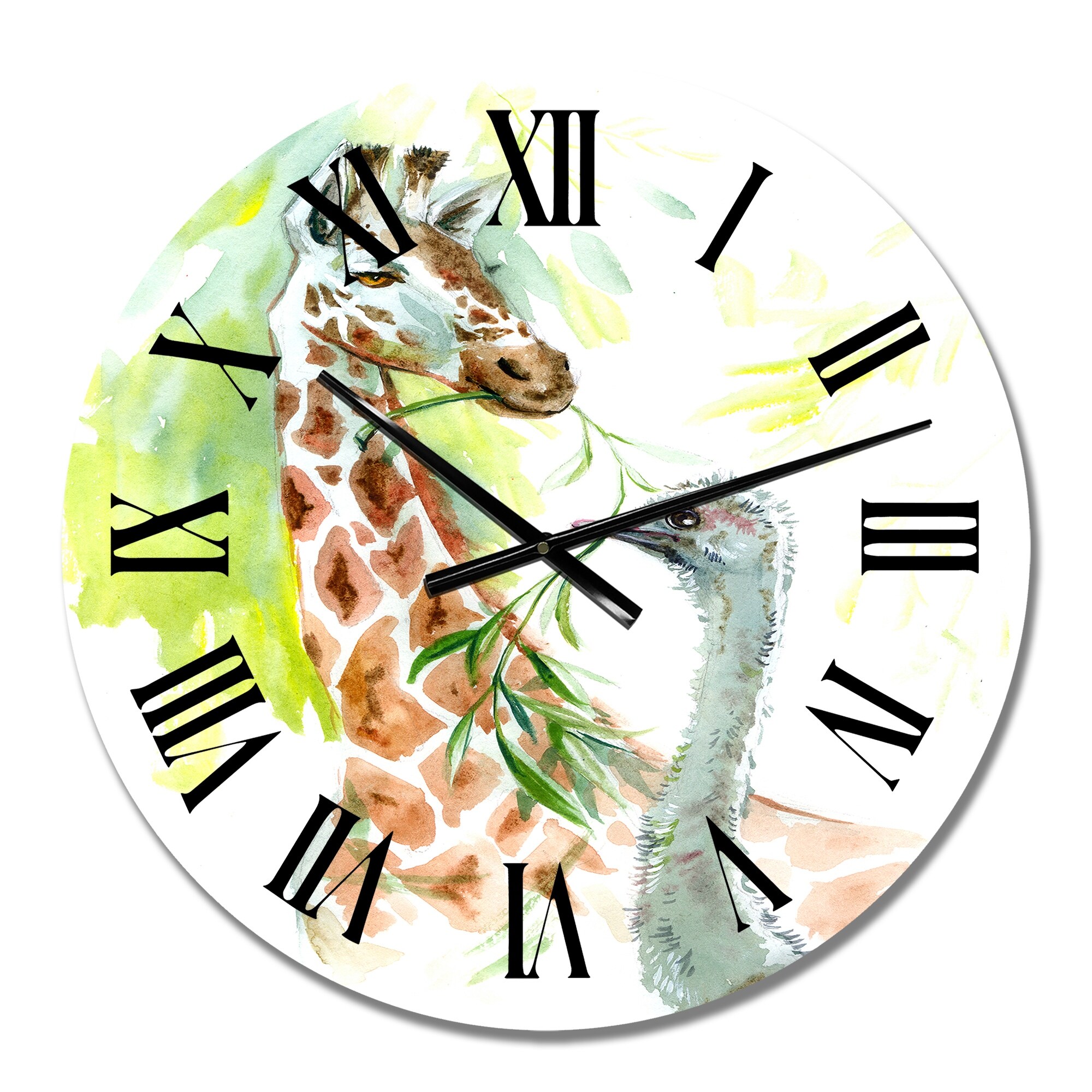 Designart 'Portrait Of a Giraffe And an Ostrich' Traditional wall clock