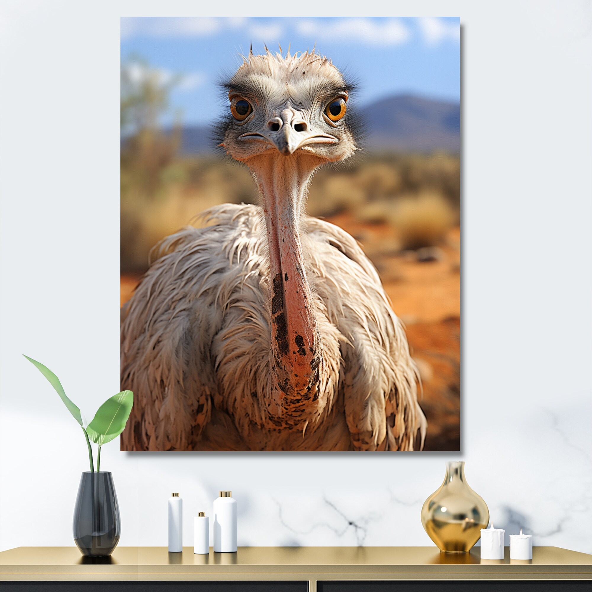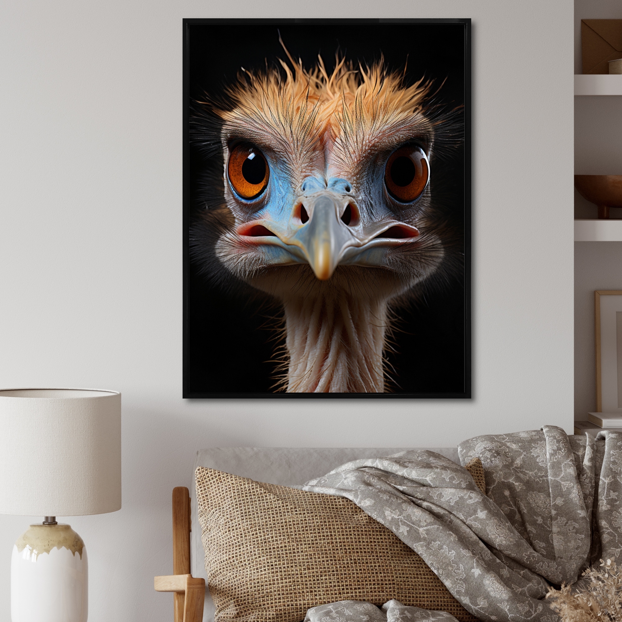 Designart "African Ostrich Portrait" Other Animals Framed Canvas Art Print