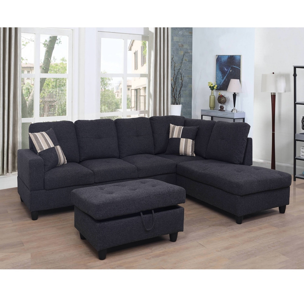 97" Modern And Contemporary Fabric 3-Piece Sectional Sofa With Storage Ottoman - 97"L x 69"W x 33"H