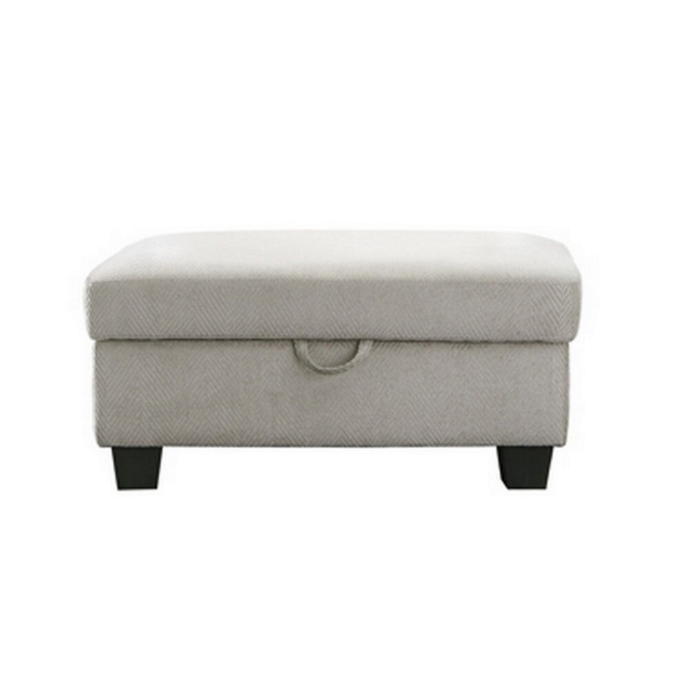 Wooden Ottoman with Textured Polyester Upholstery and Storage, Light Gray