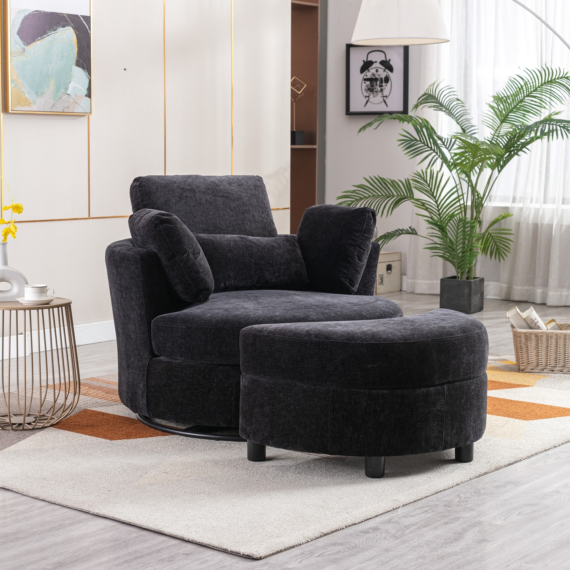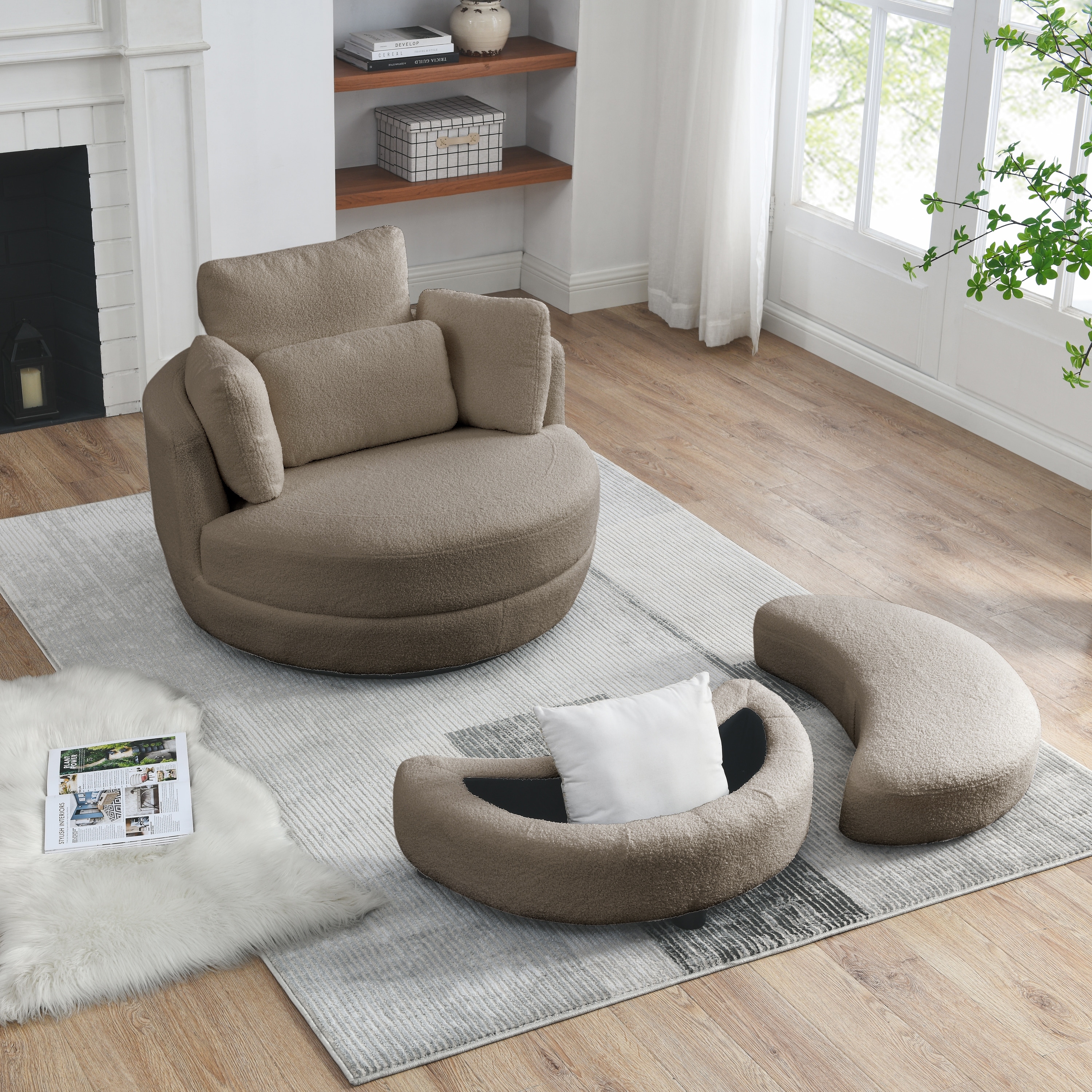 Oversized Swivel Chair with Moon Storage Ottoman and Pillows