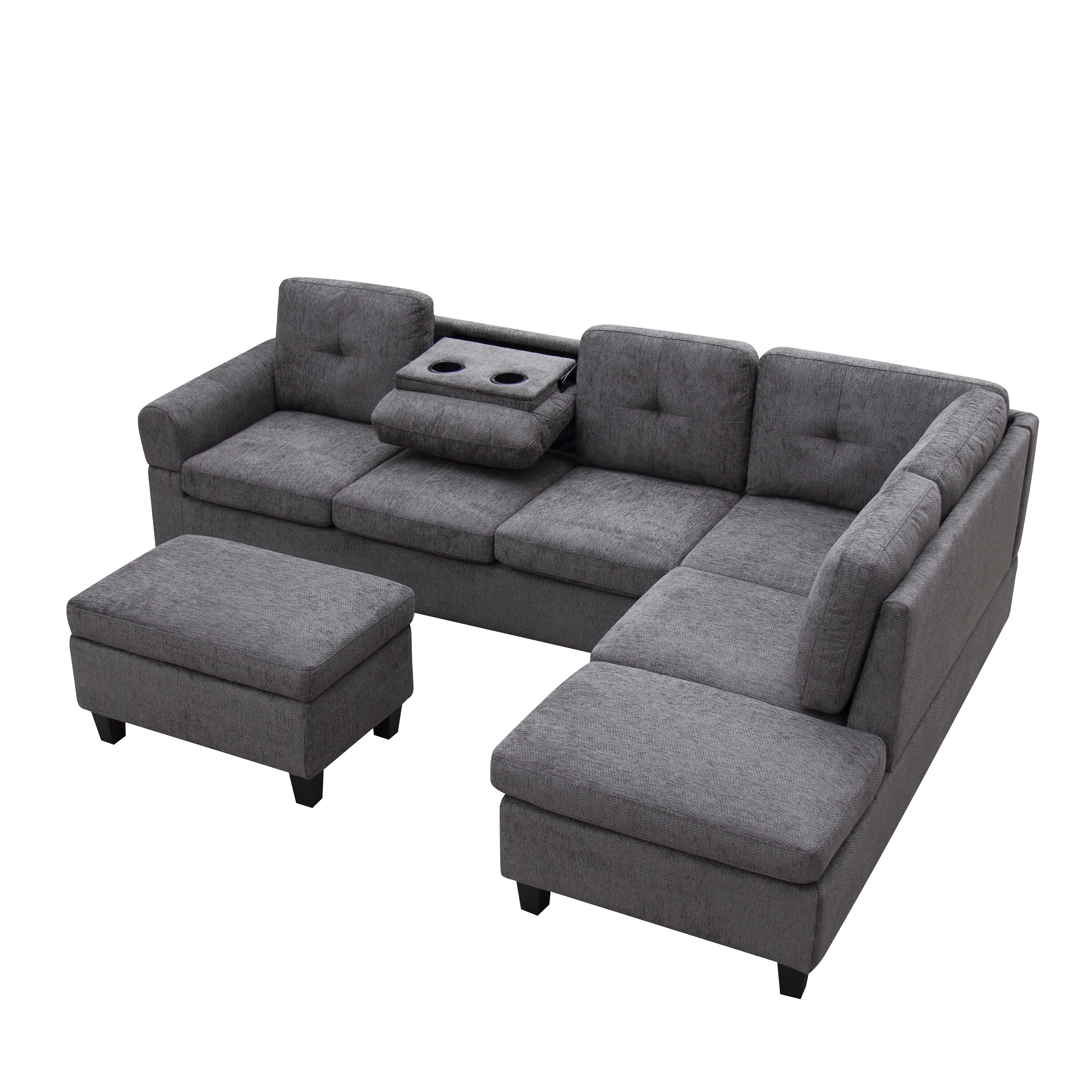 Mixoy L-Shaped Sectional Sofa with 2 Cup Holders,Storage Ottoman