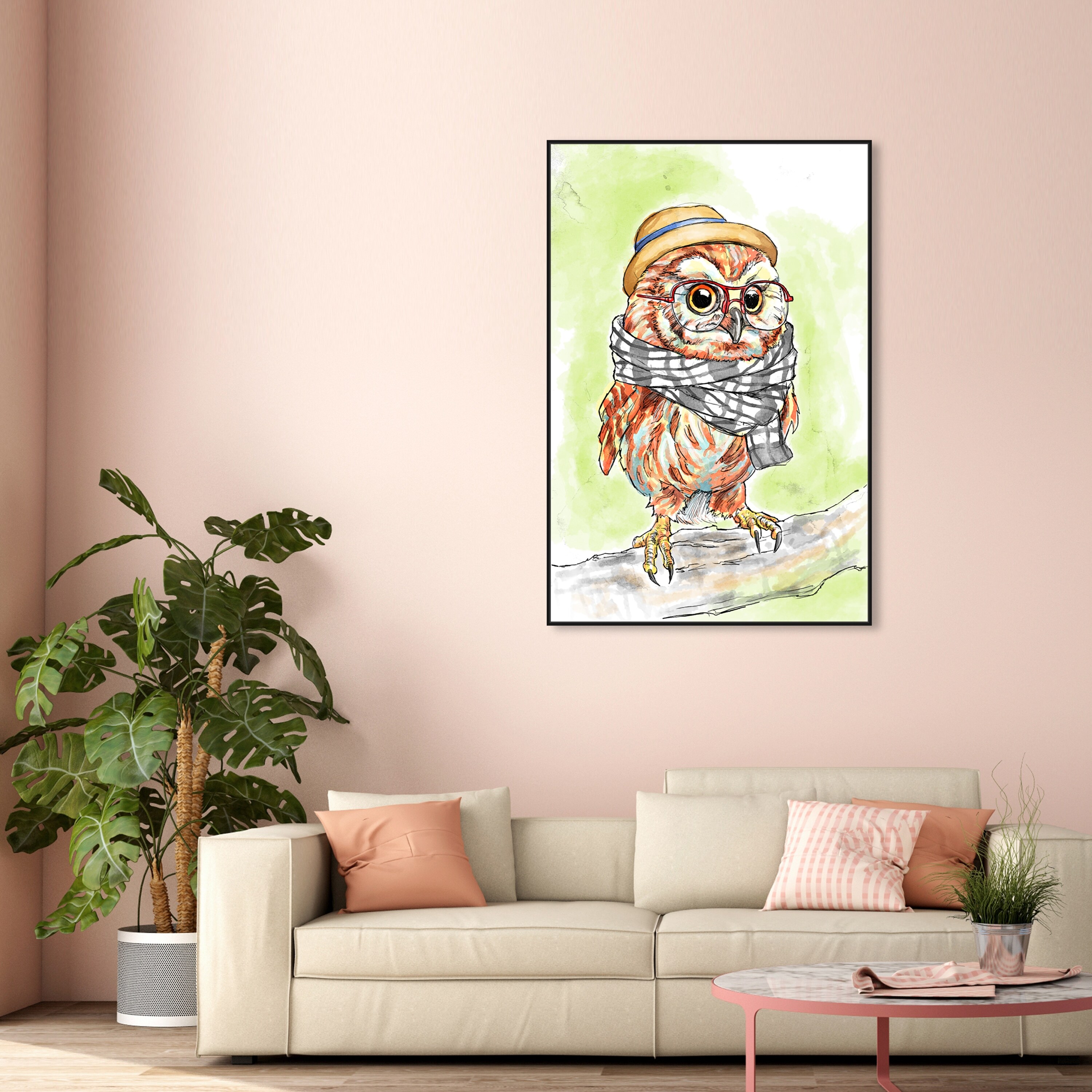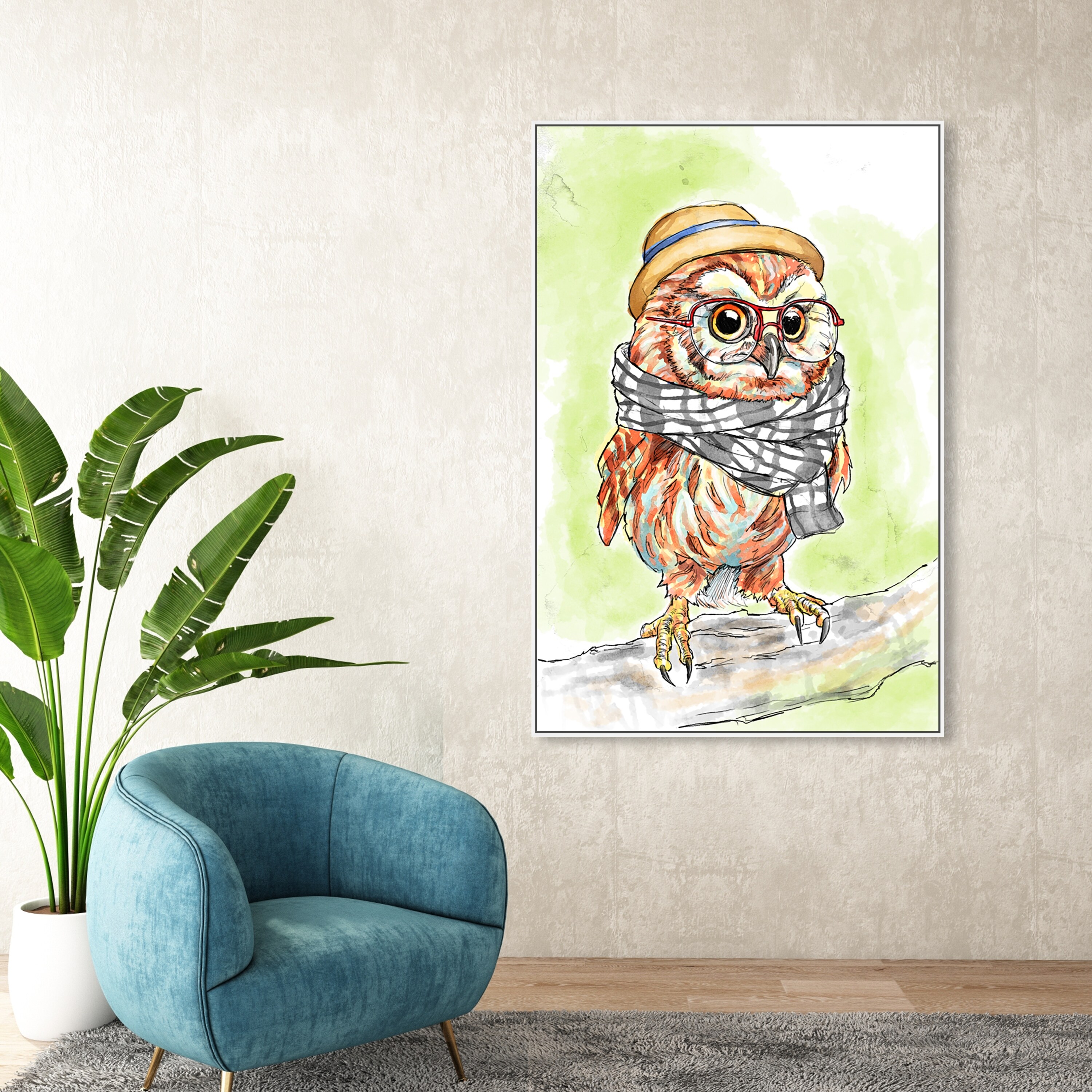 Oliver Gal 'Owl' Animals Wall Art Framed Canvas Print Birds - Green, Brown