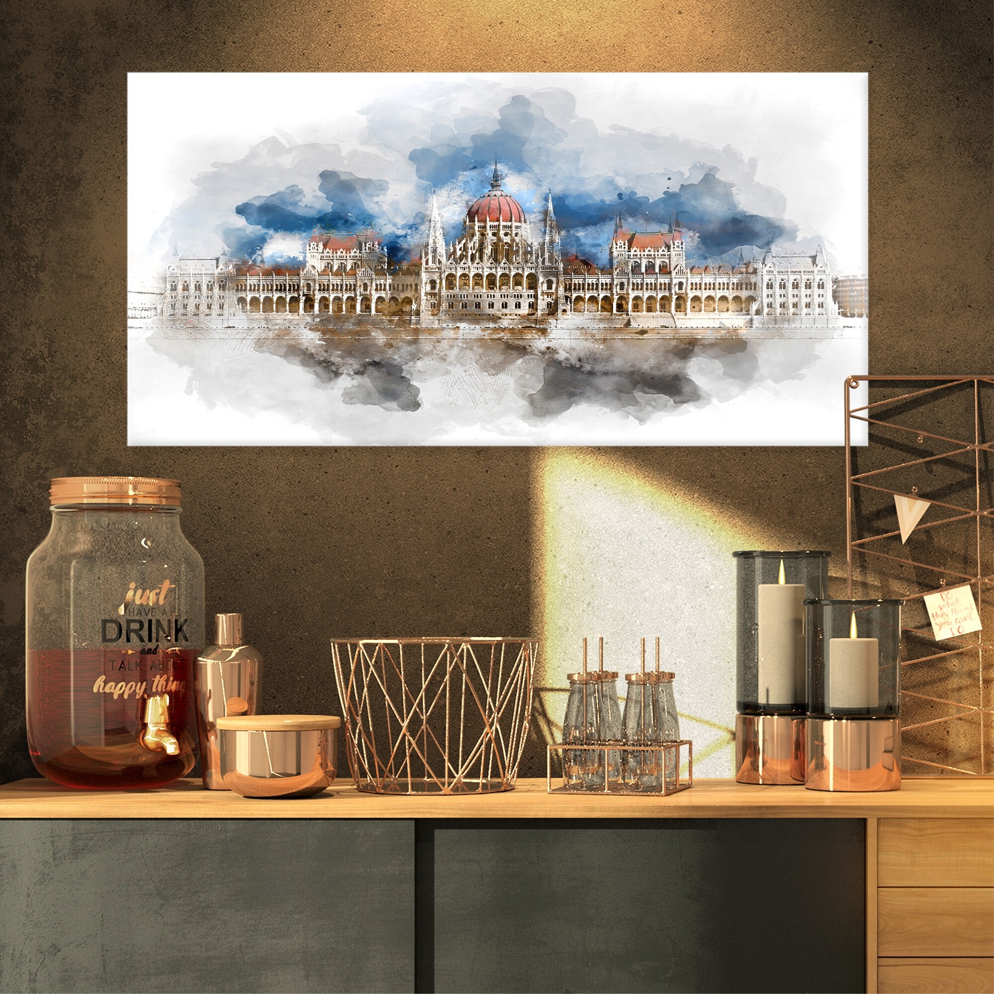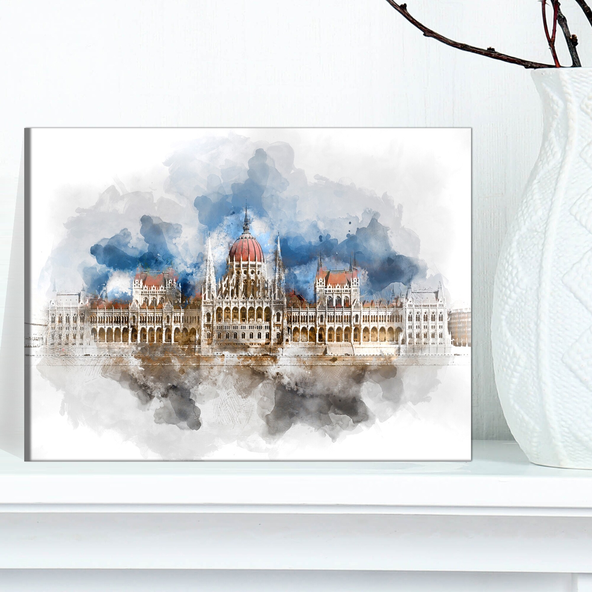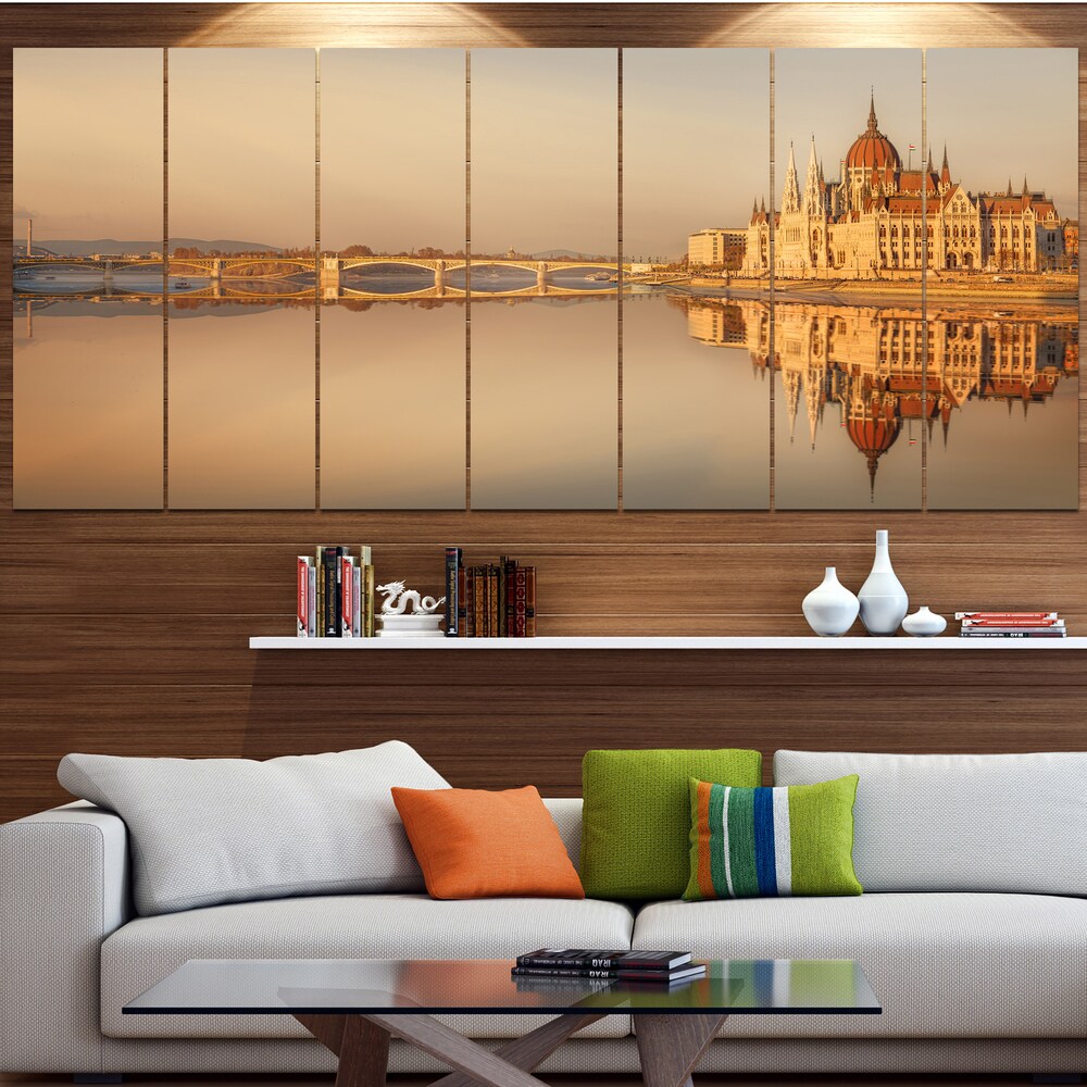 Designart "Hungarian Parliament Panorama" Modern Cityscape Wall Art - Multi-color