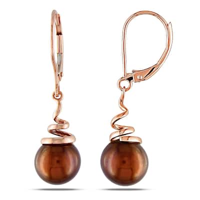 Miadora 14k Pink Gold Brown Cultured Freshwater Pearl Earrings (8-8.5 mm)