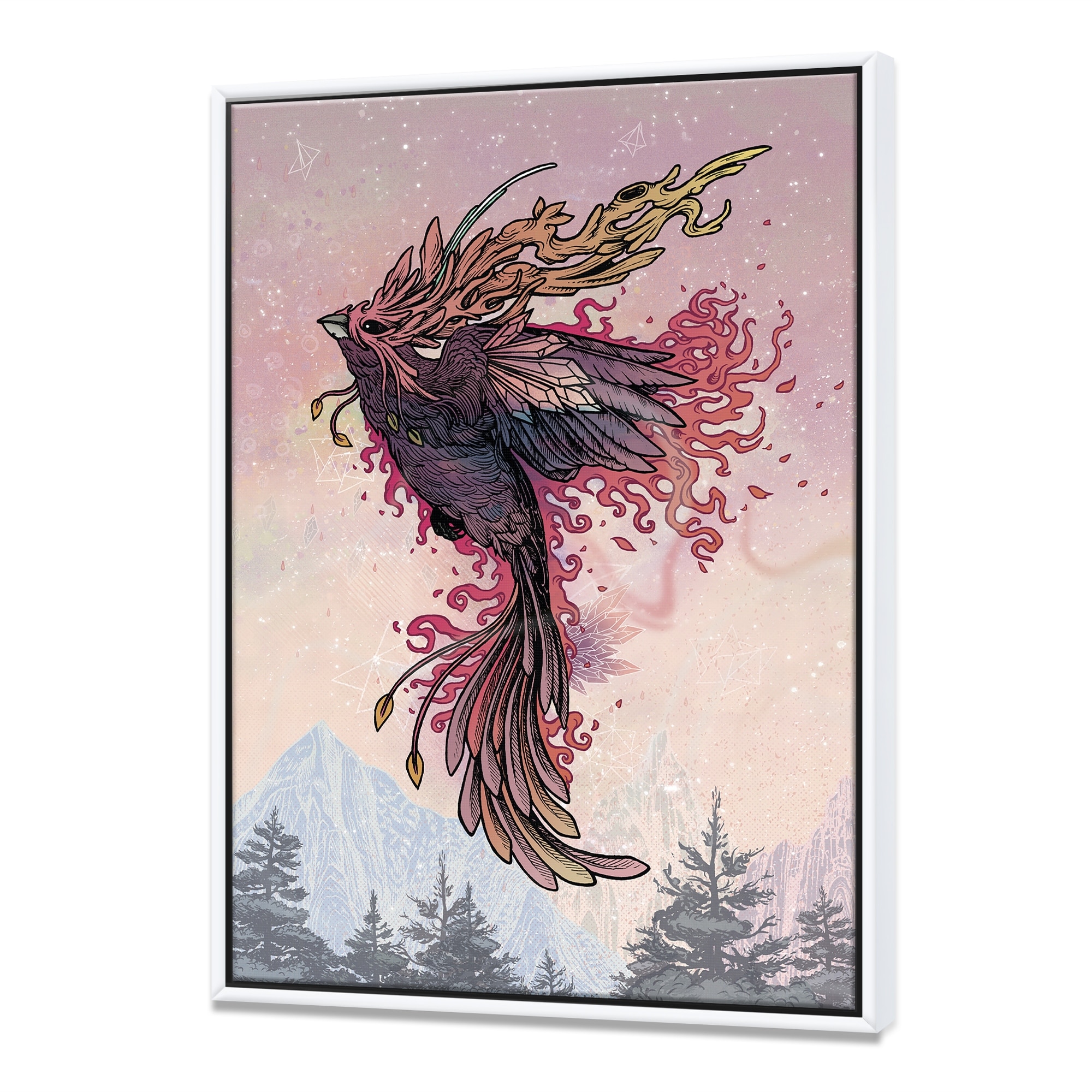 Designart "Phoenix Rising Over Moun tains" Modern & Contemporary Framed Canvas Wall Art