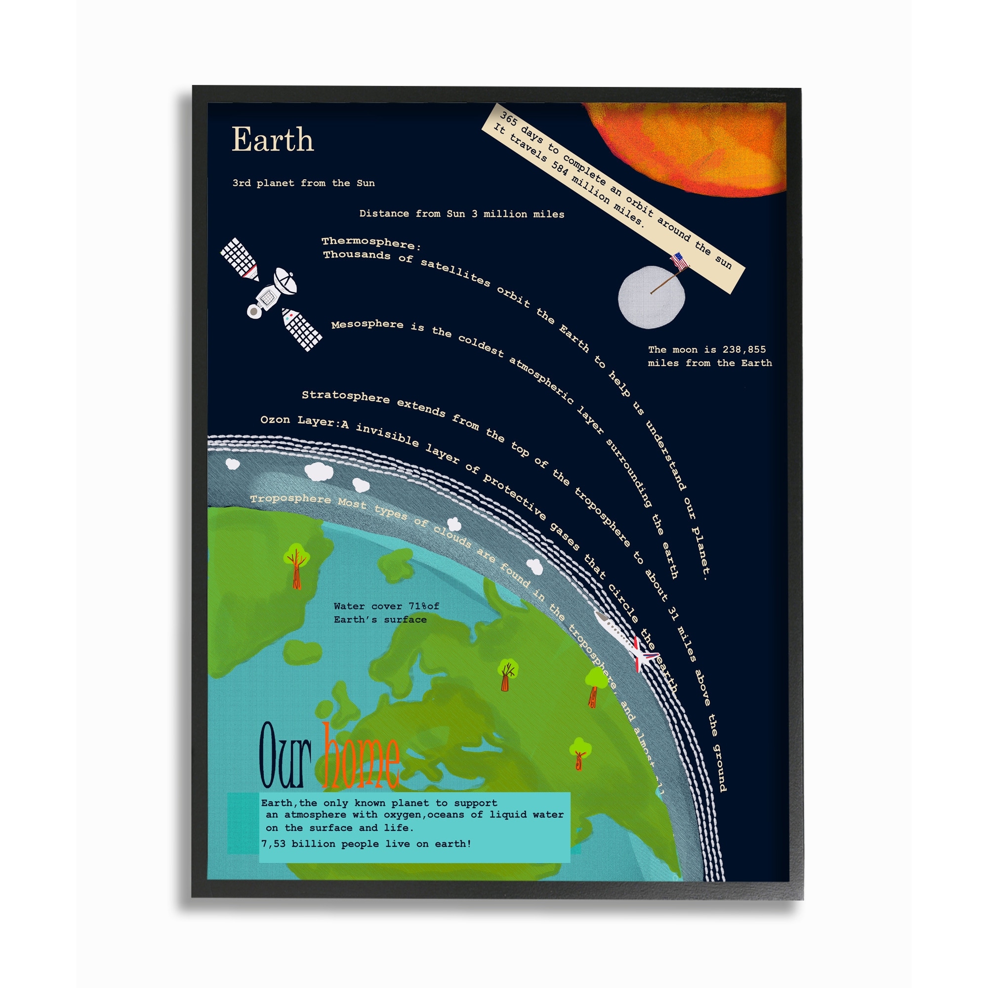 Stupell Kids' Planet Earth Facts Outer Space View Framed Wall Art - Blue