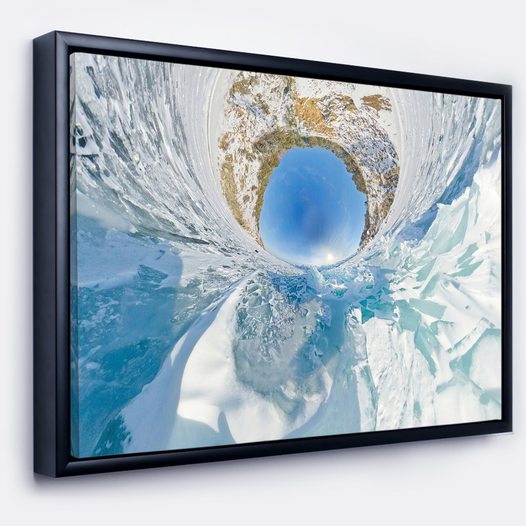 Designart "Blue Ice Hummocks Baikal Little Planet" Landscape Artwork Print on Framed Canvas