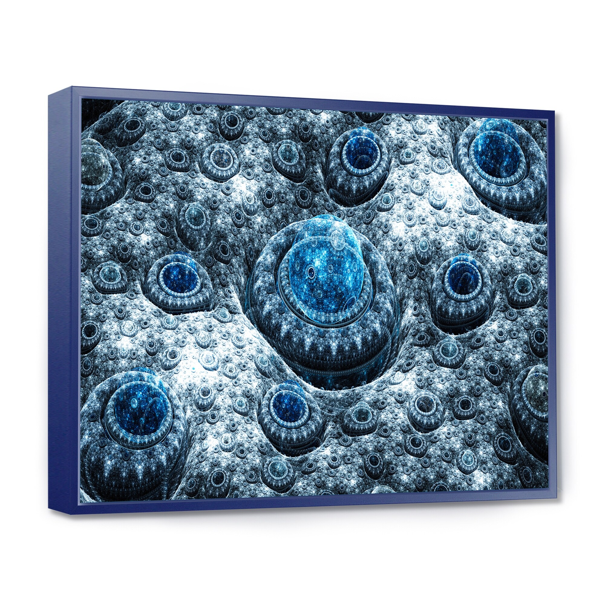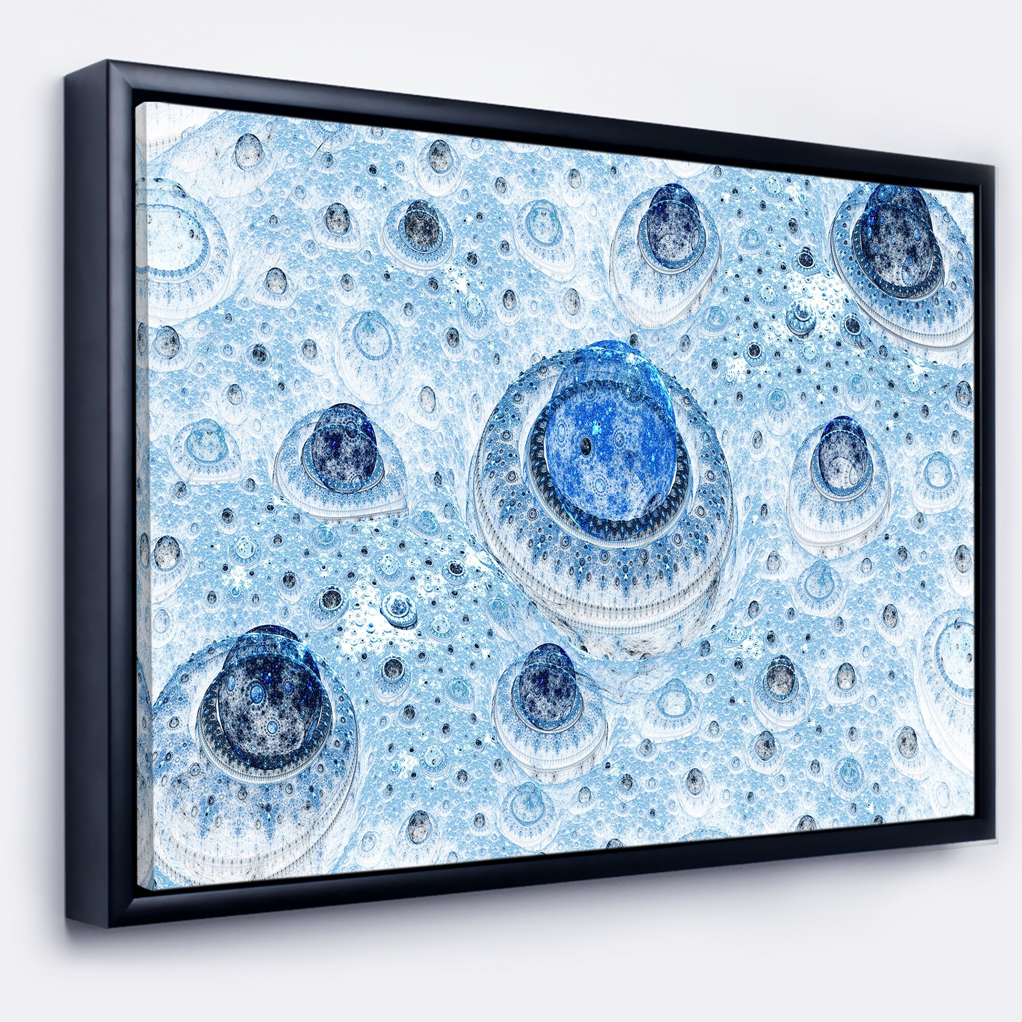 Designart "Blue Fractal Planet of Bubbles" Abstract Wall Art Framed Canvas