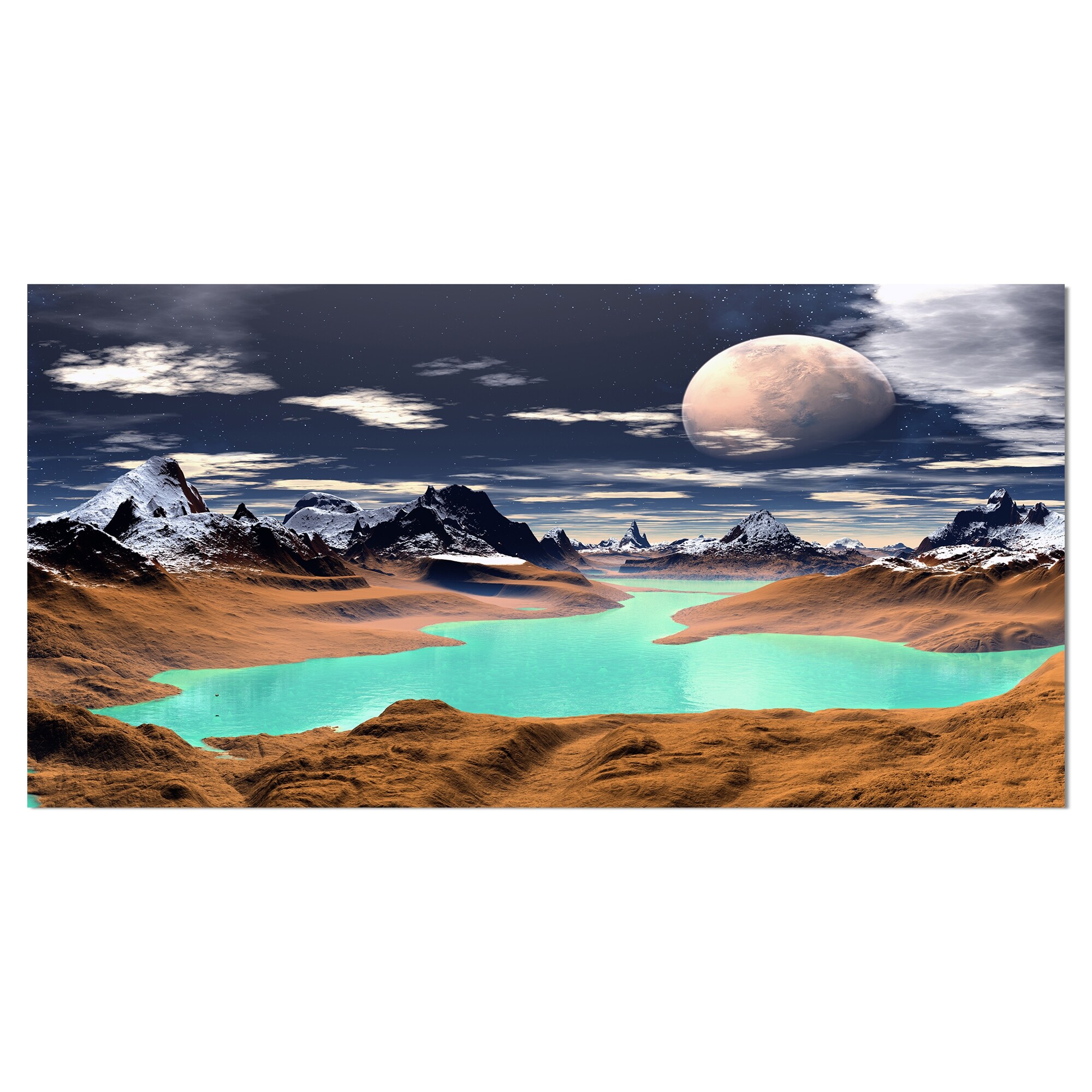 Designart "The Green Lake Planet" Digital Art on wrapped Canvas - Blue