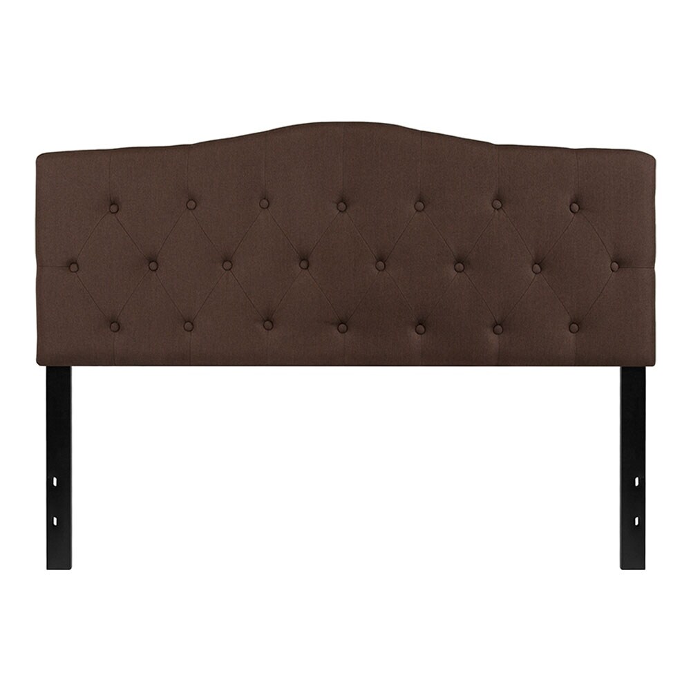 Offex Button Tufted Upholstered Queen Size Headboard- DarkBrown Fabric