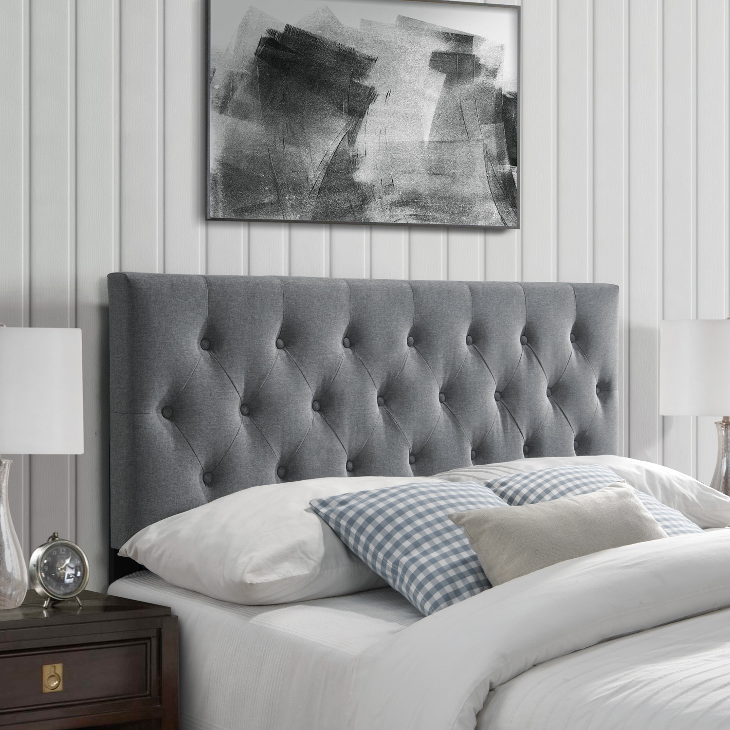 Elle Decor Amery Tufted Upholstered Headboard, Queen Gray
