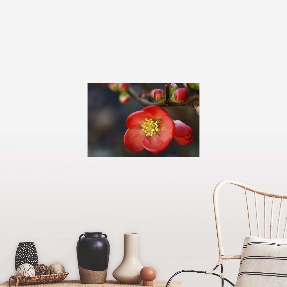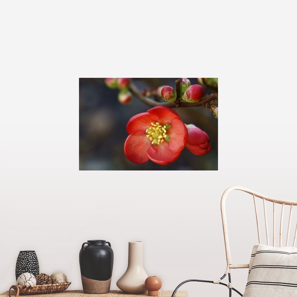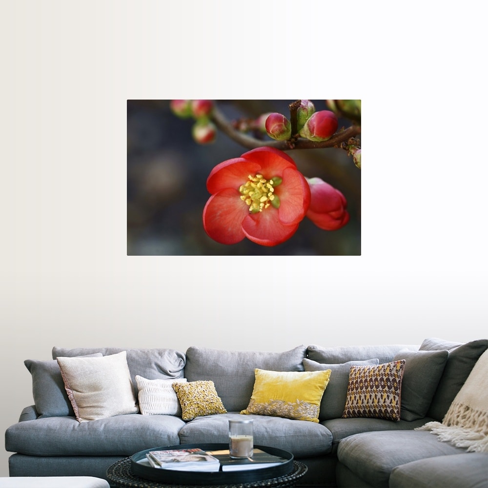 "Red flowering quince." Poster Print - Multi
