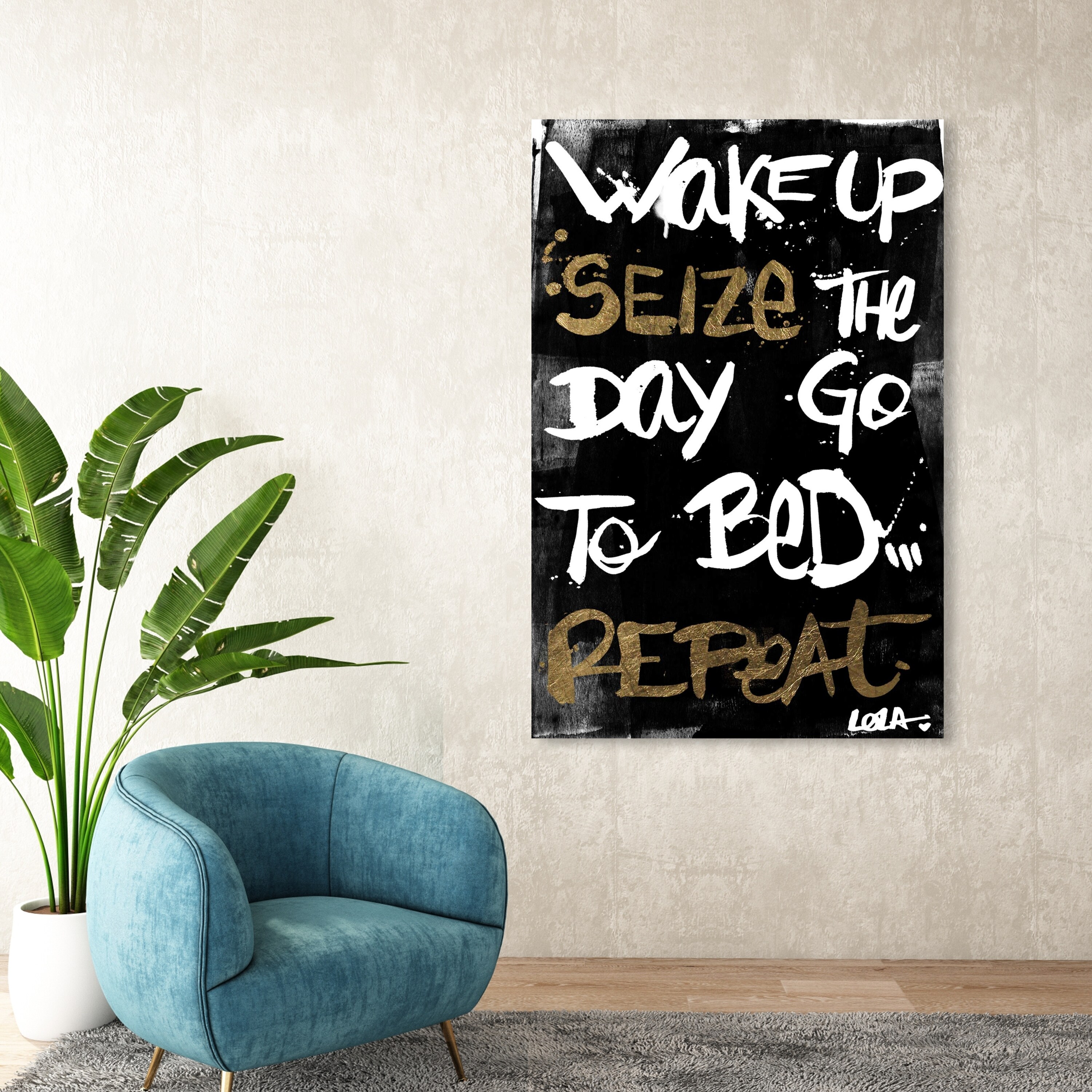 Oliver Gal 'Seize The Day Gold Vertical' Typography and Quotes Wall Art Canvas Print Inspirational Quotes - Black, Gold