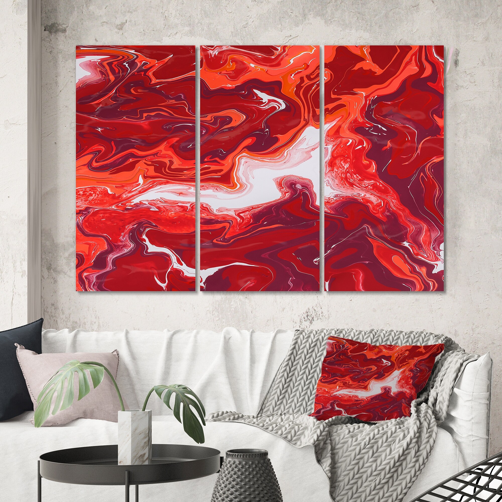Designart "Red And White Marble Ripples" Modern Canvas Wall Art Print